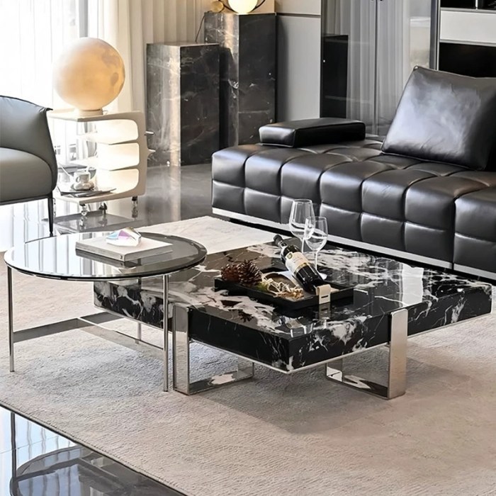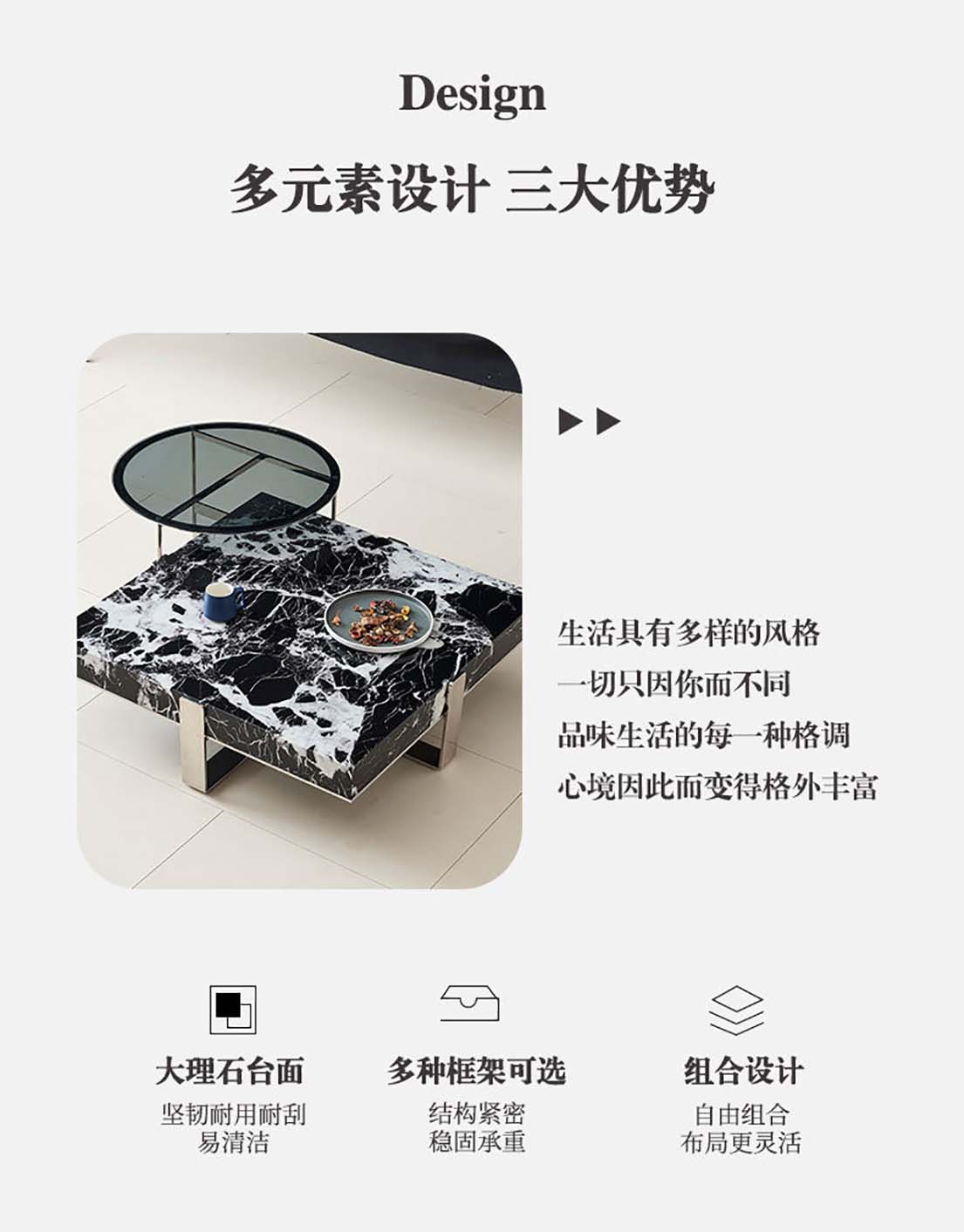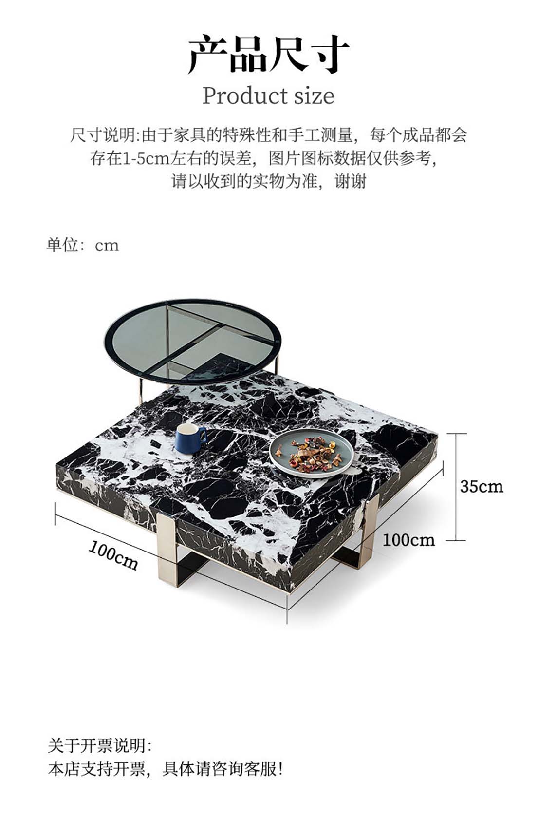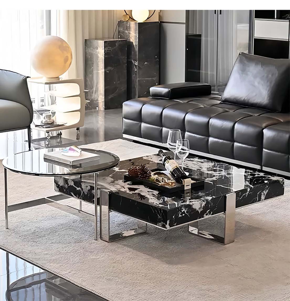 意式极简大理石茶几 现代大小户型客厅轻奢高级方茶几组合