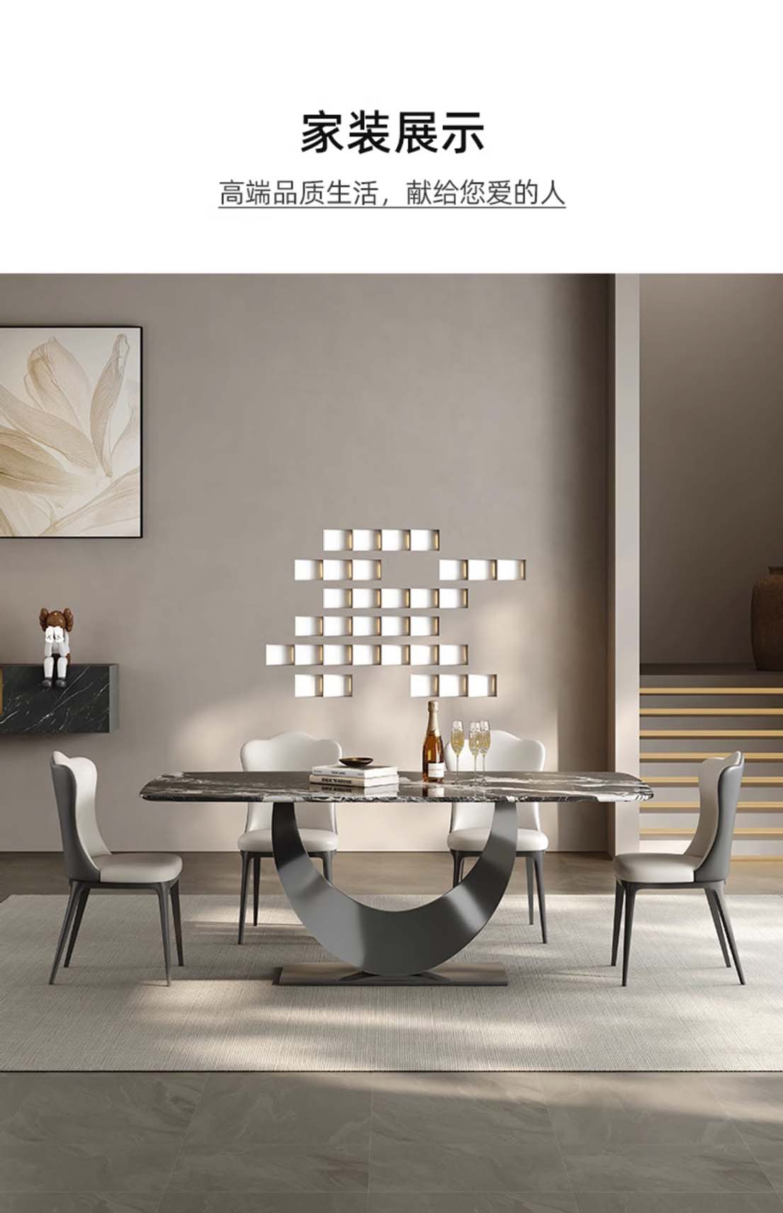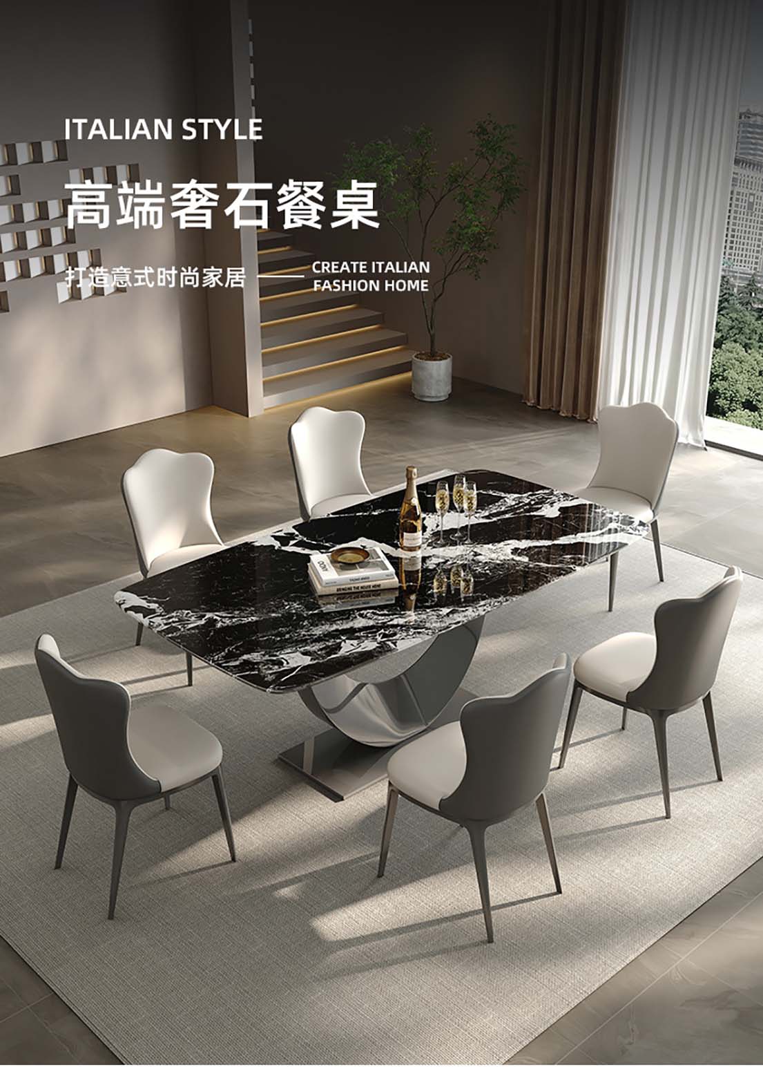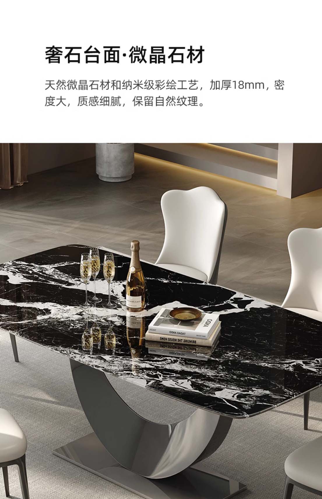 ¥3336.00意式轻奢微晶石餐桌 现代高端奢石家用别墅天然石餐桌