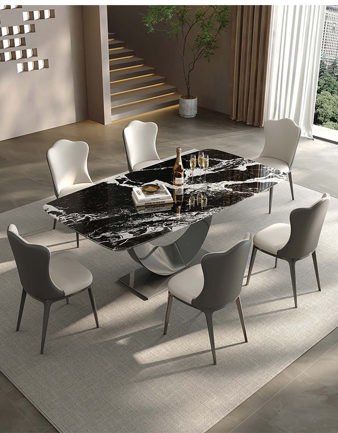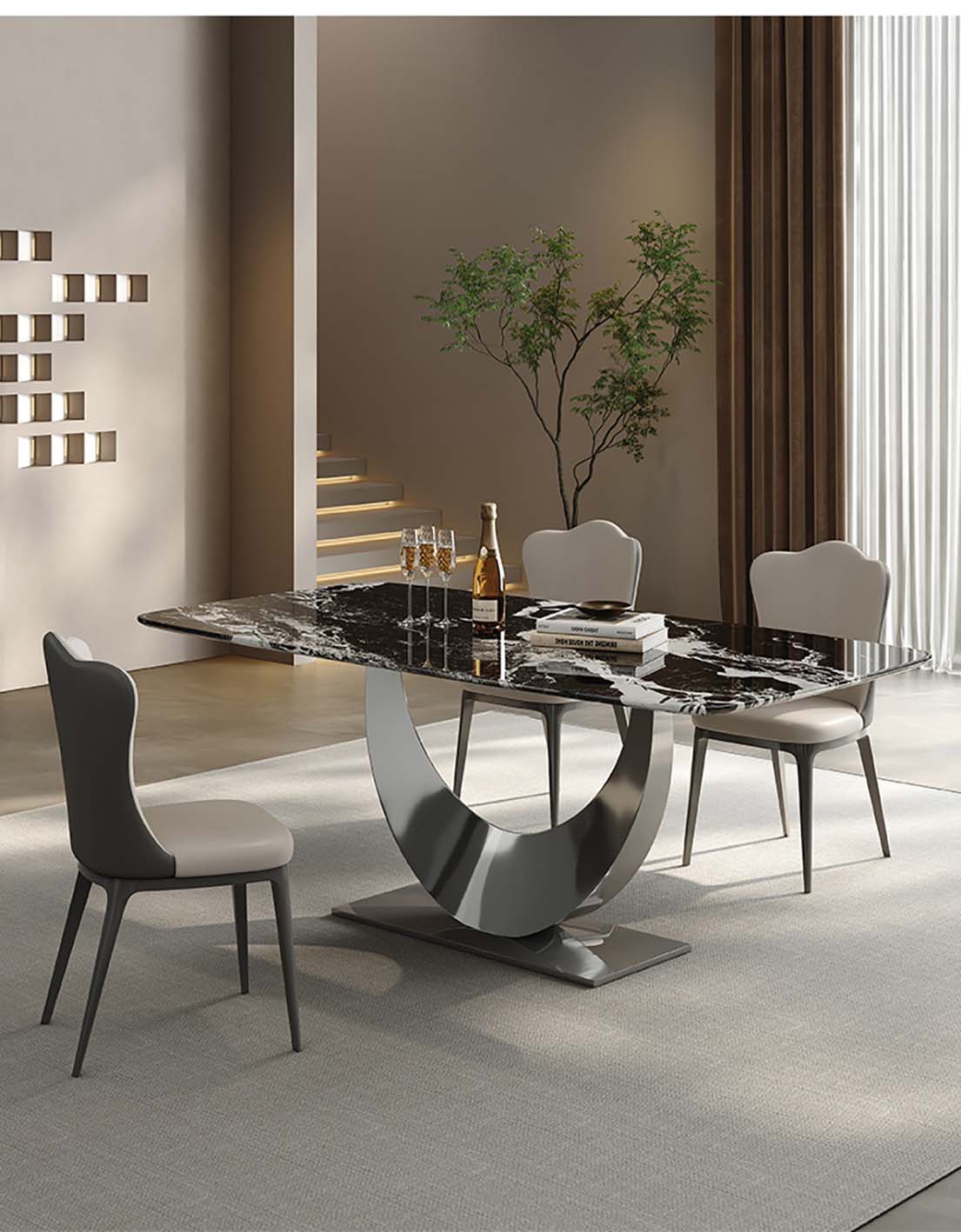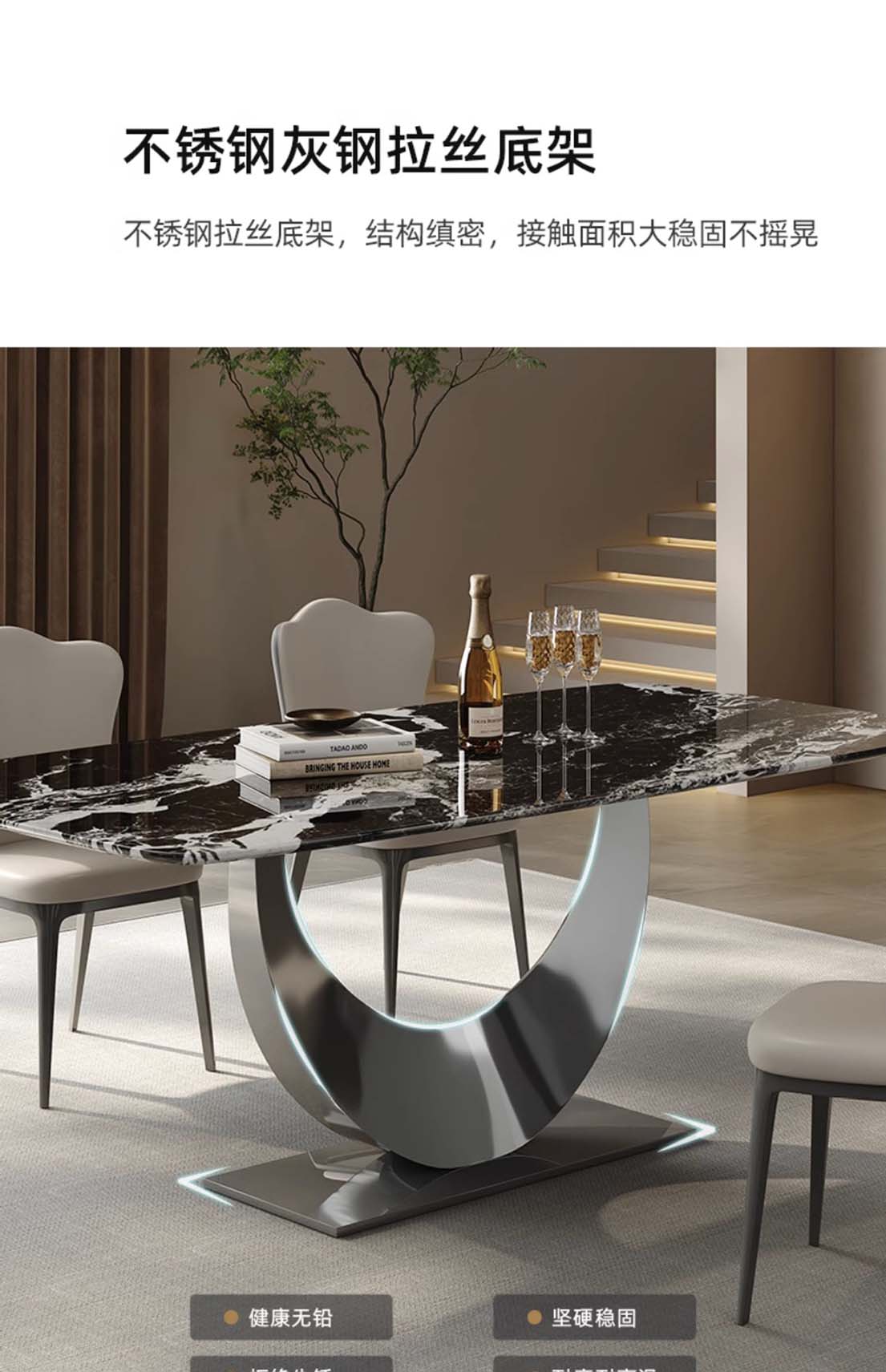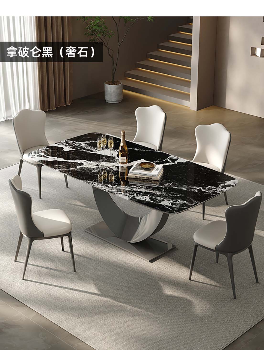 ¥3336.00意式轻奢微晶石餐桌 现代高端奢石家用别墅天然石餐桌