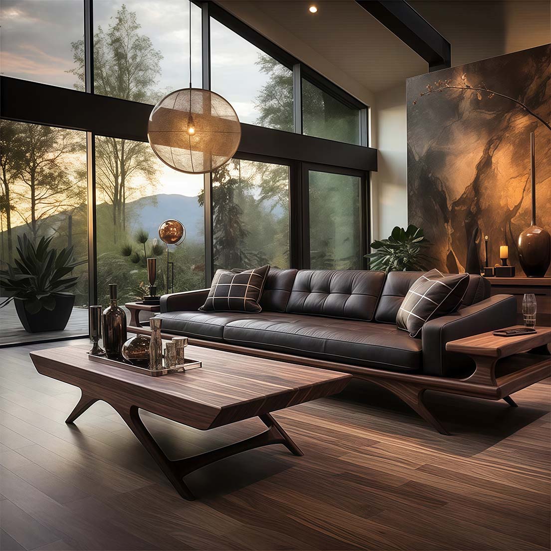 新中式黑胡桃木沙发 轻奢实木直排高档客厅别墅