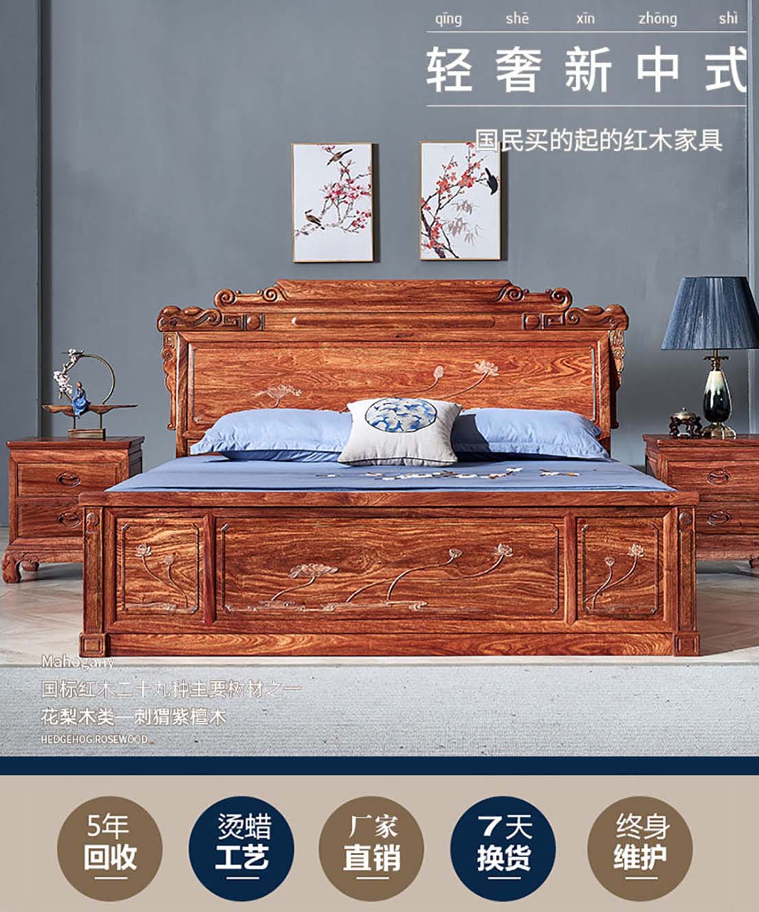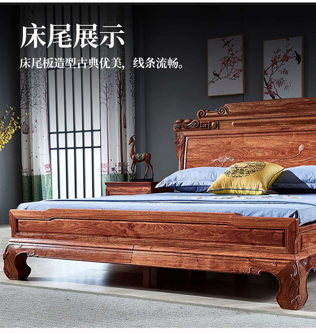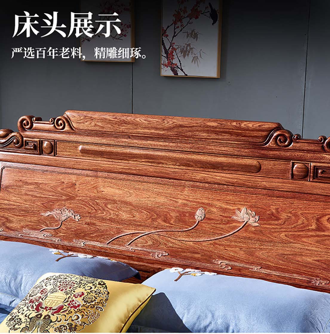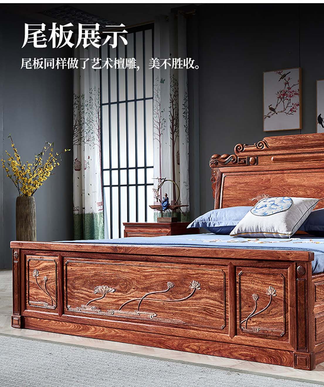 ¥21216.00中式红木双人床 1.8米 刺猬紫檀花梨木床实木床卧室卯榫红木家具定制