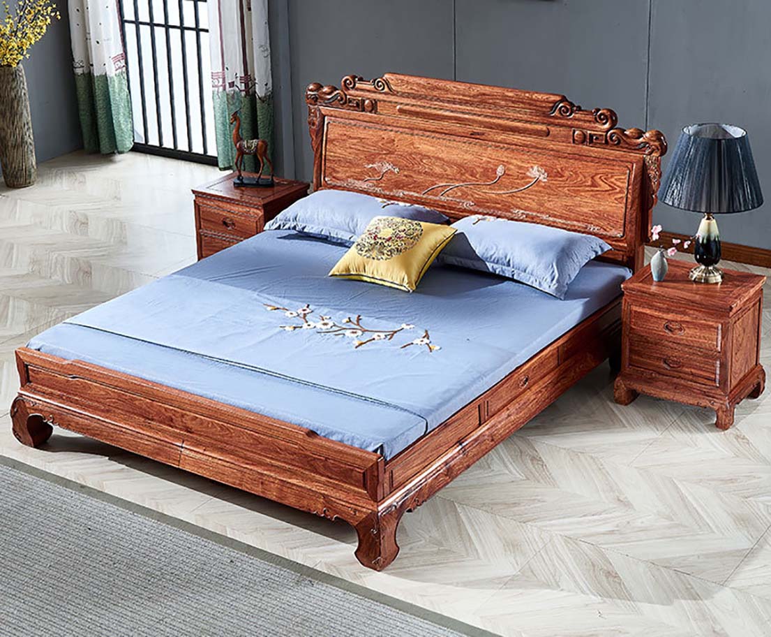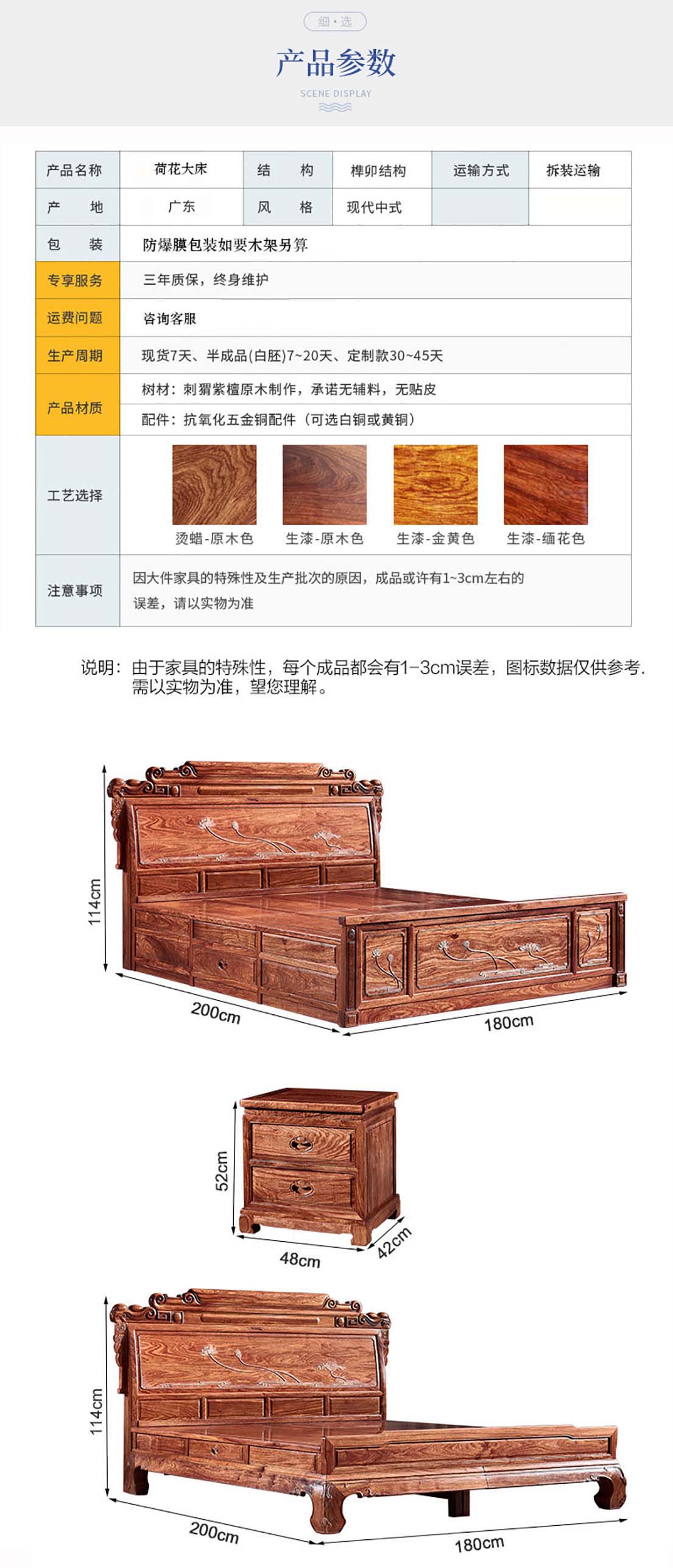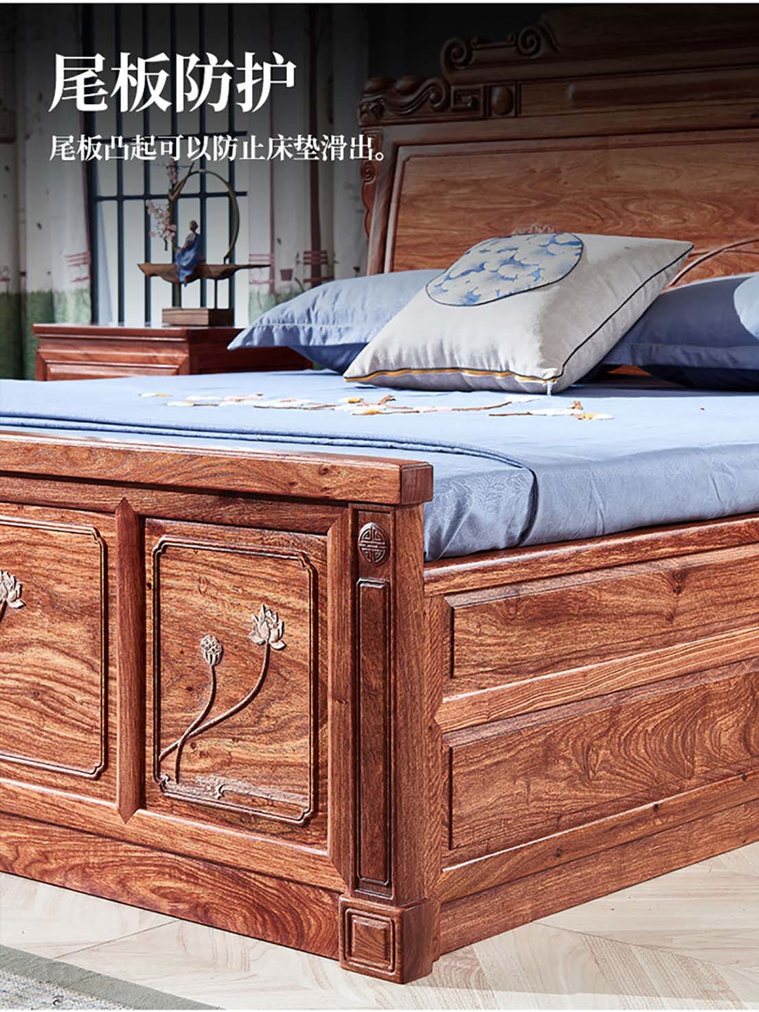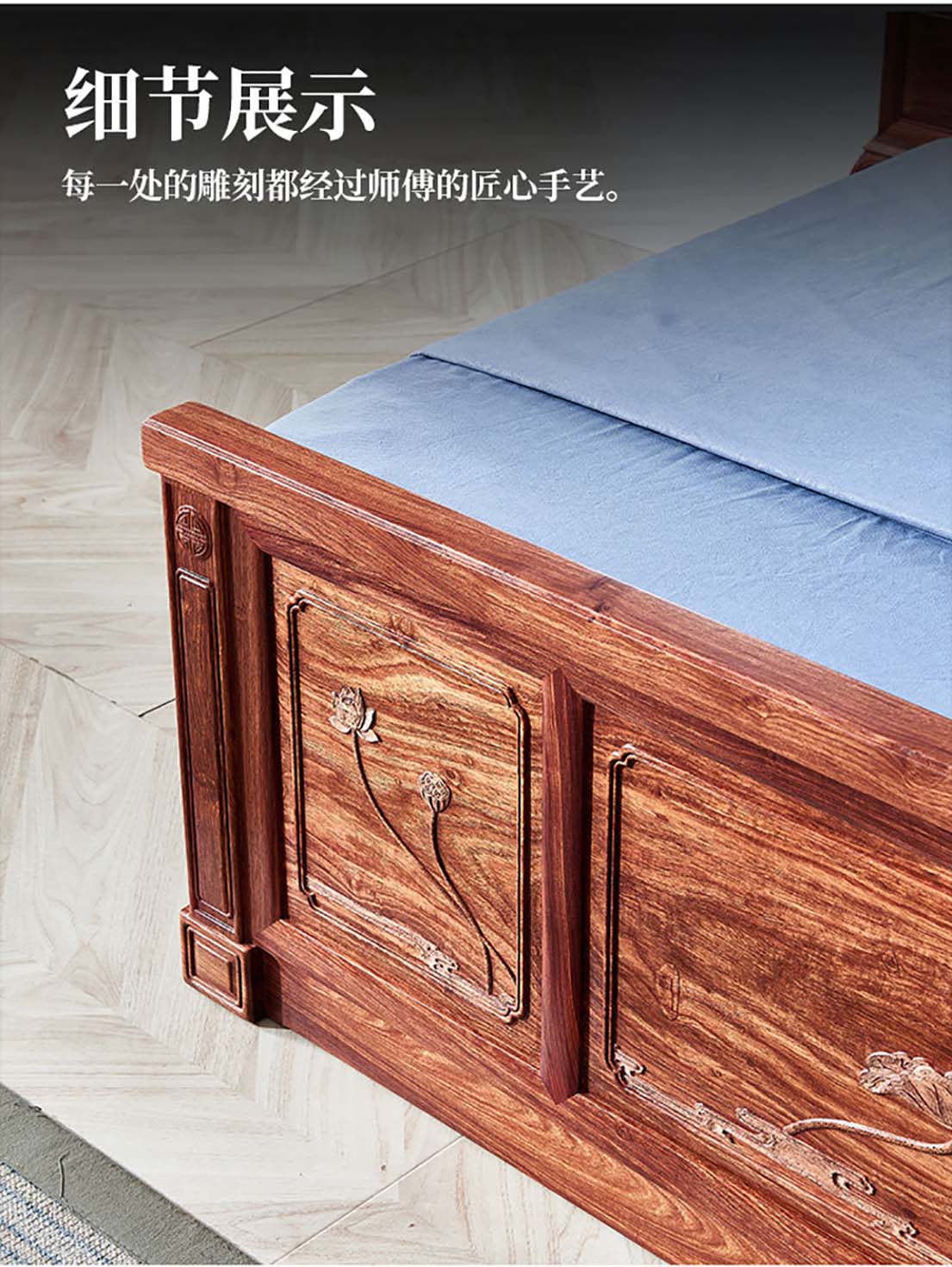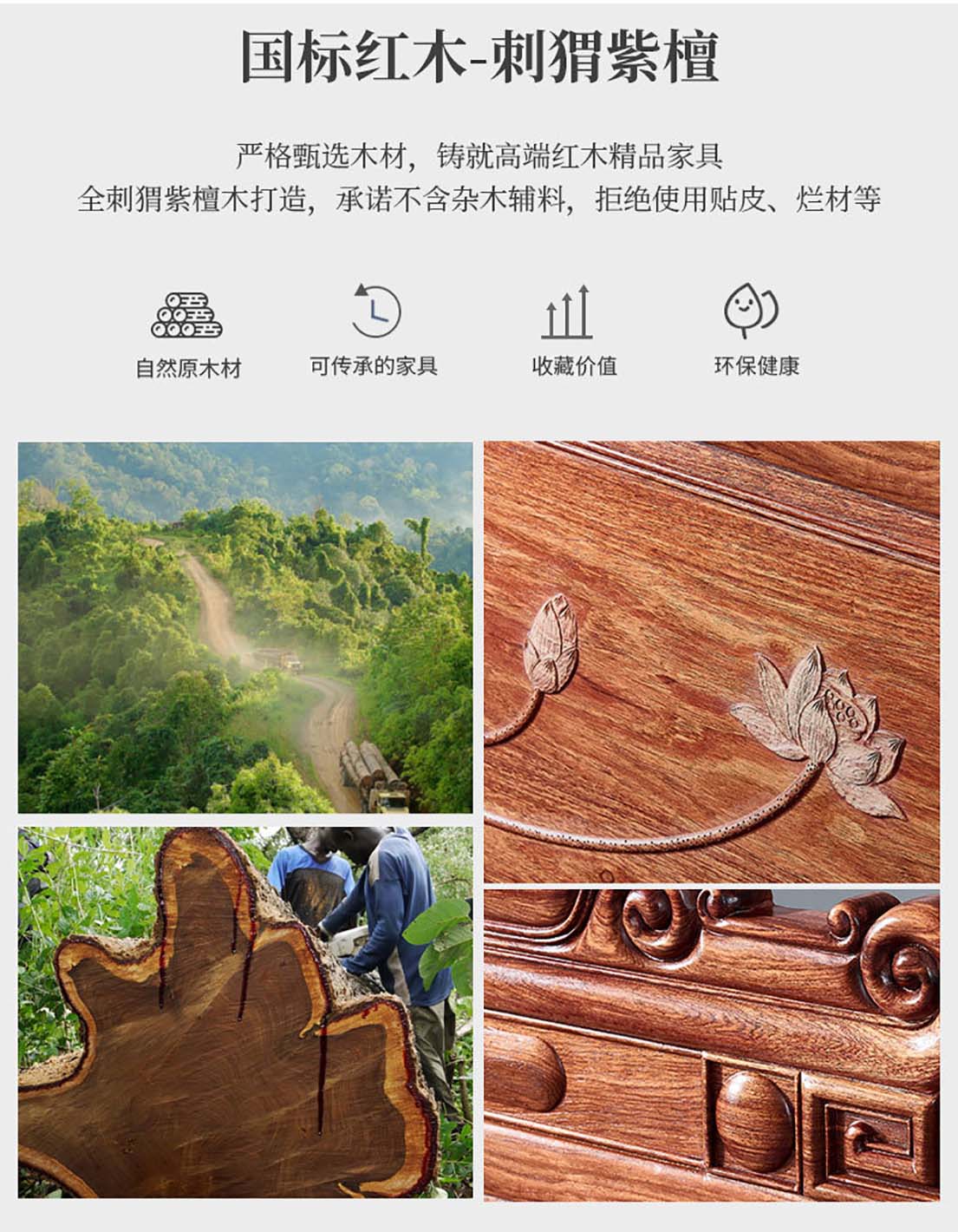 ¥21216.00中式红木双人床 1.8米 刺猬紫檀花梨木床实木床卧室卯榫红木家具定制