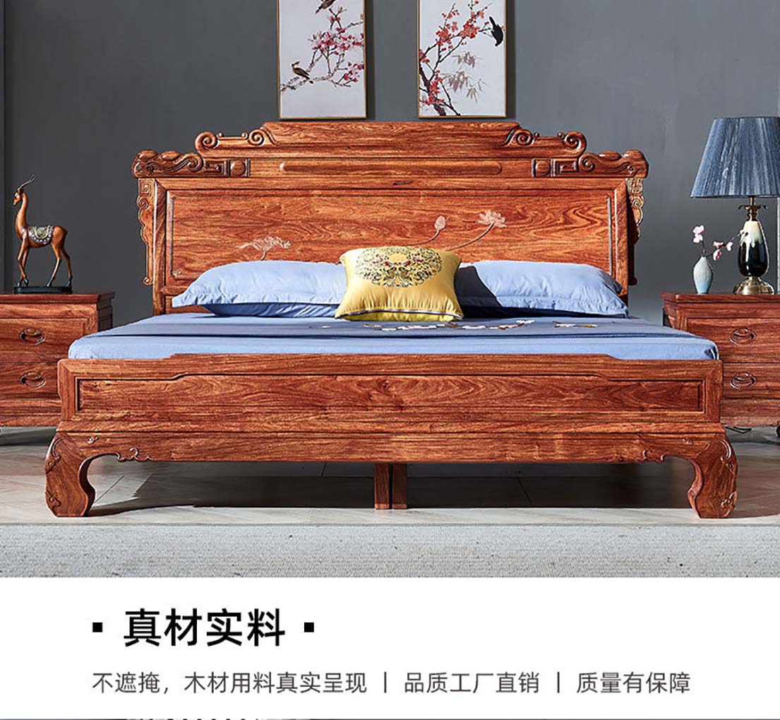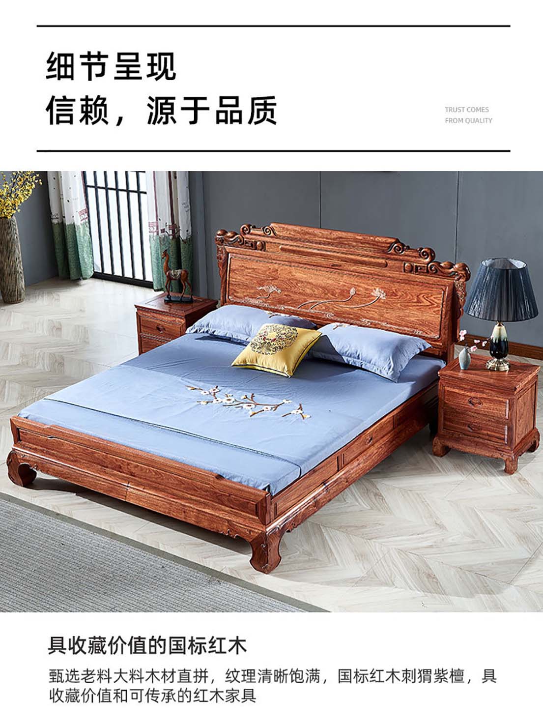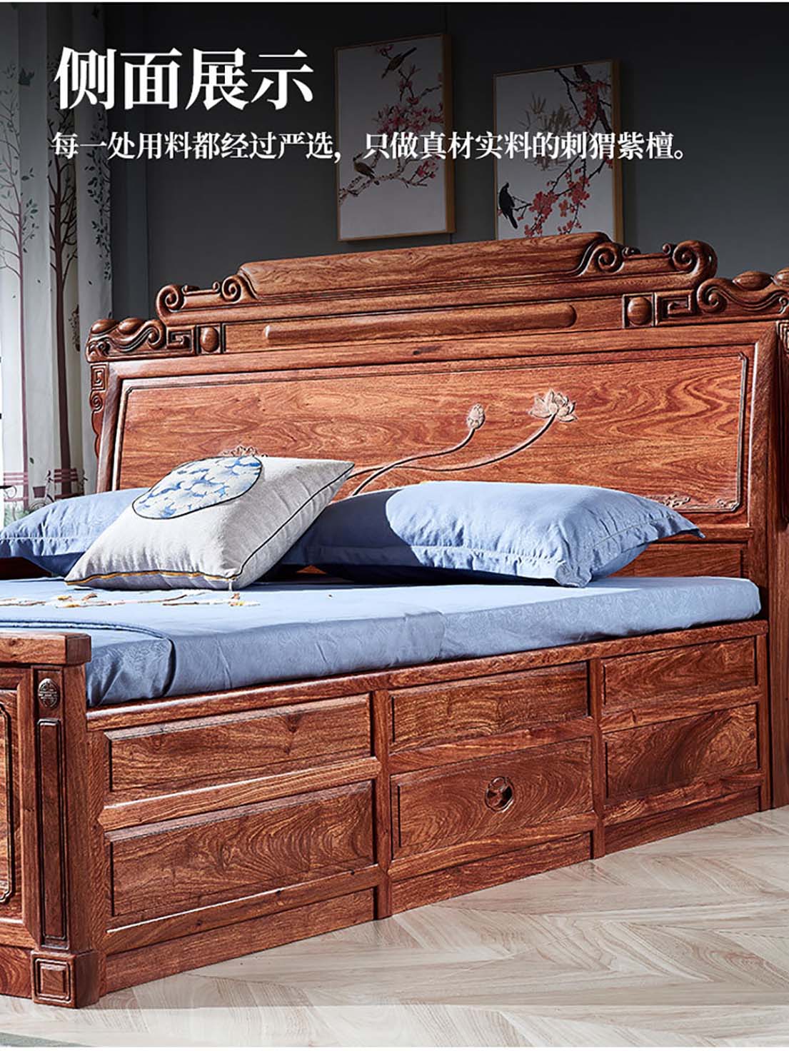 中式红木双人床 1.8米 刺猬紫檀花梨木床实木床卧室卯榫红木家具定制
