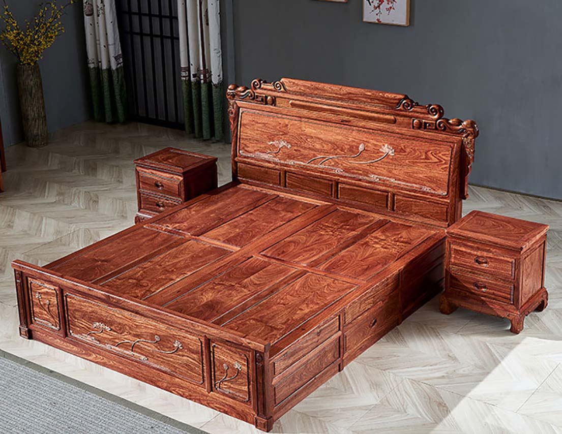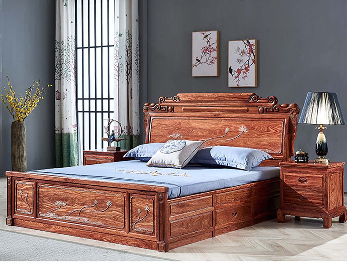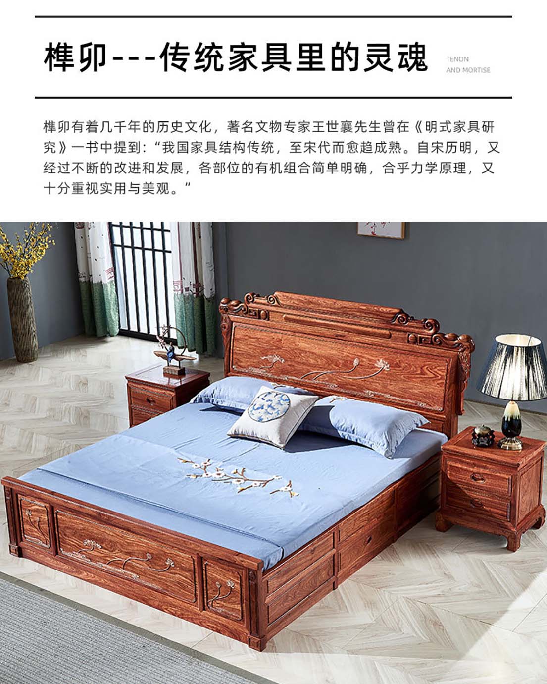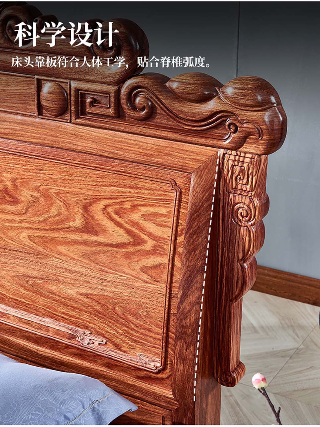 中式红木双人床 1.8米 刺猬紫檀花梨木床实木床卧室卯榫红木家具定制