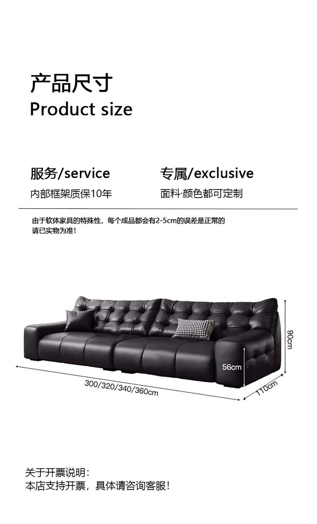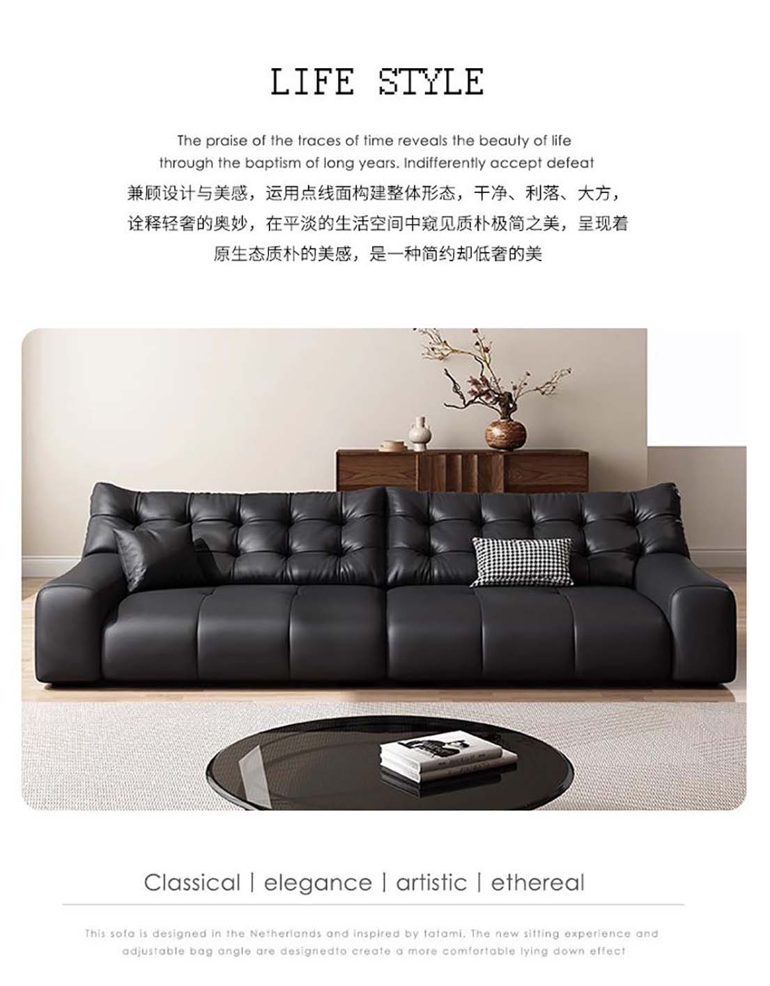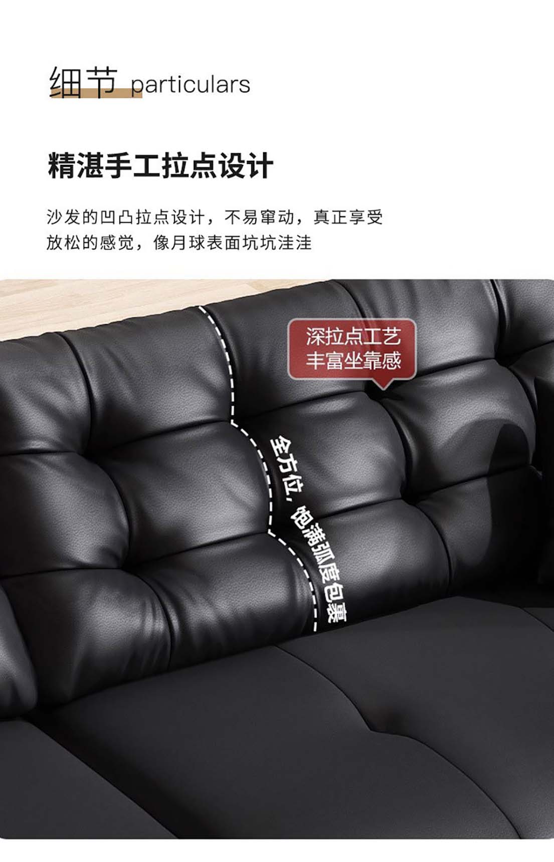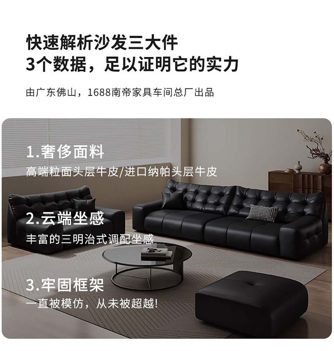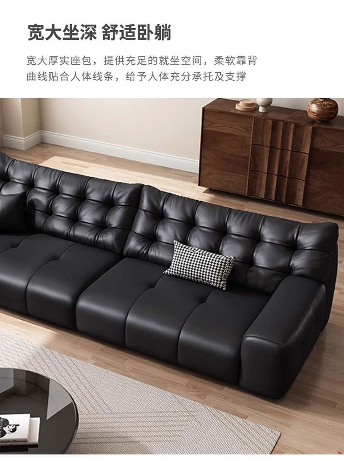 ¥2136.00意式极简大黑熊沙发 现代装饰客厅头层牛皮高靠背黑色皮艺沙发定制