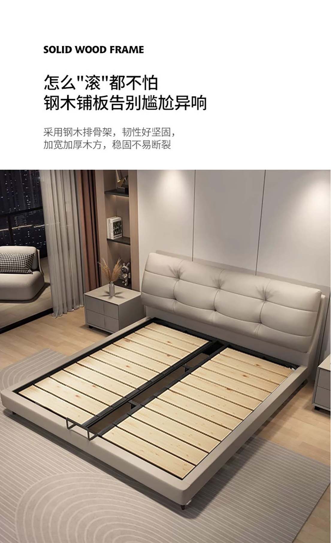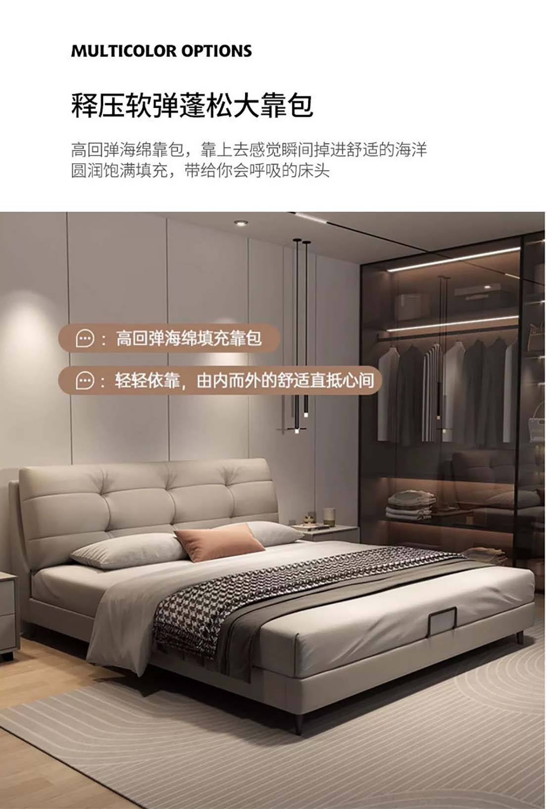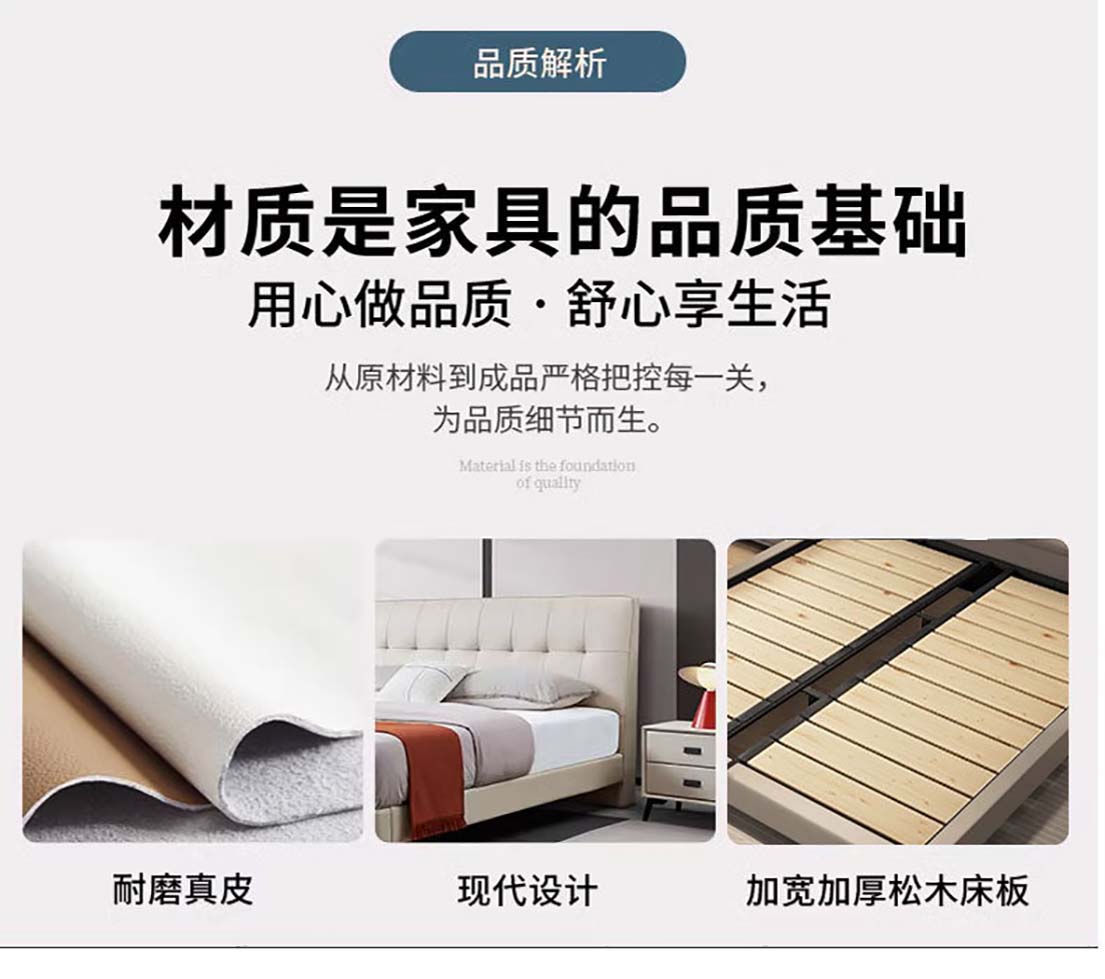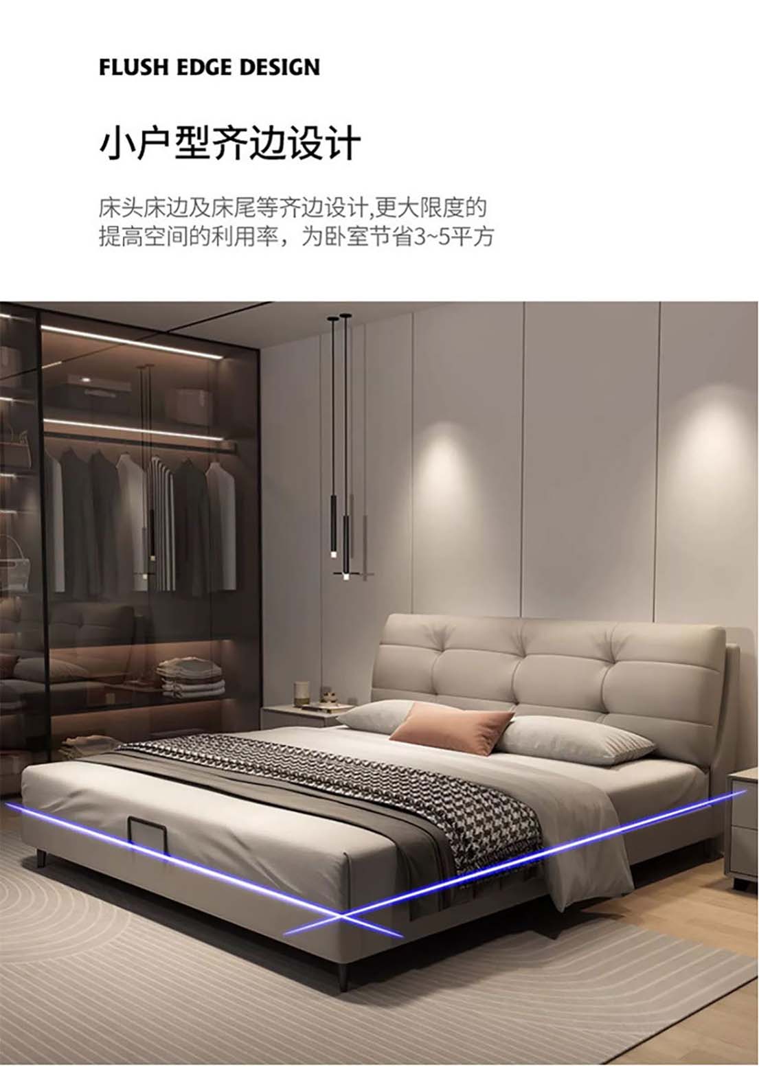 现代极简真皮床主泡芙风软包头层牛皮 双人床