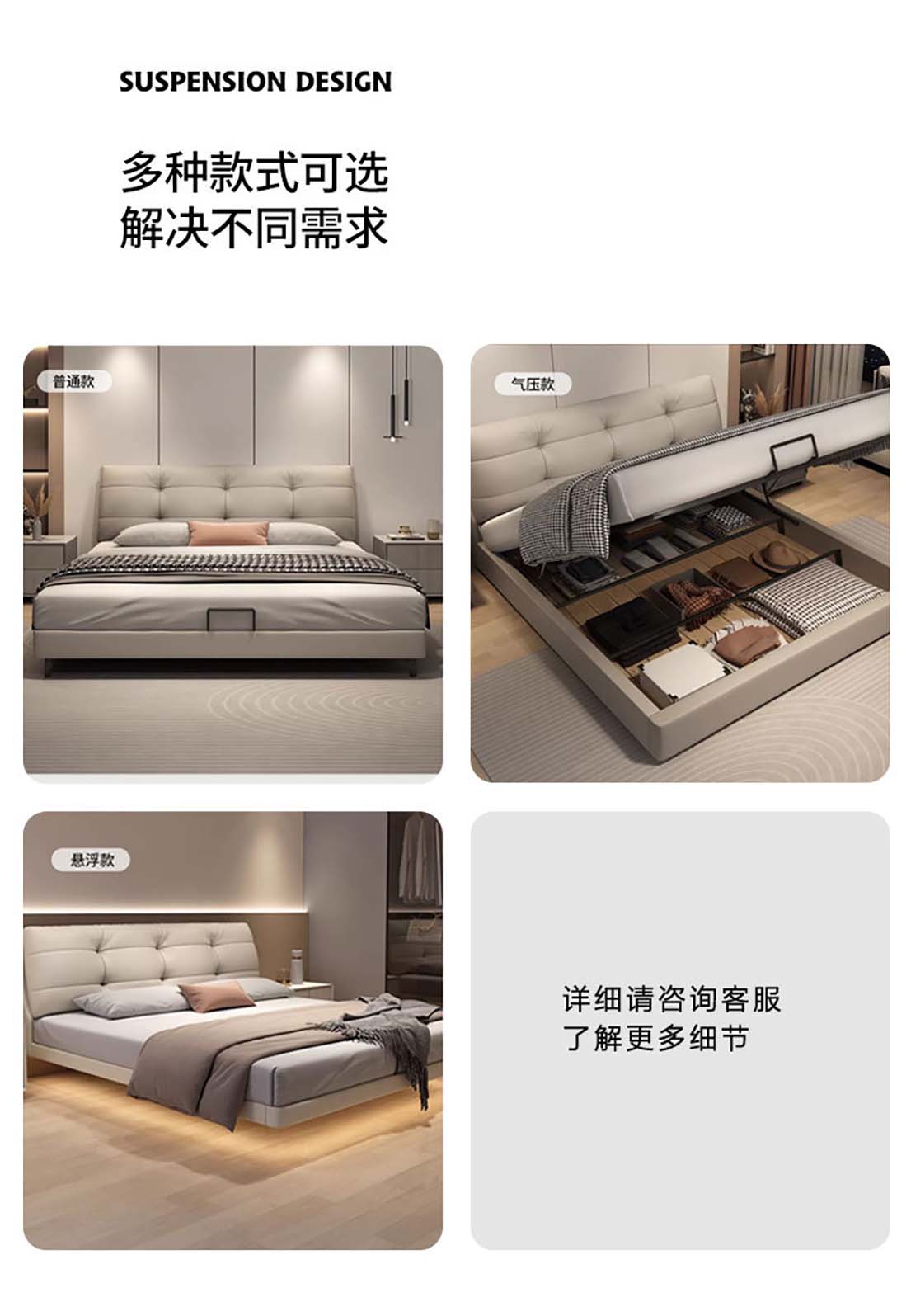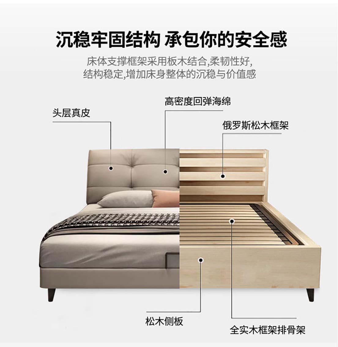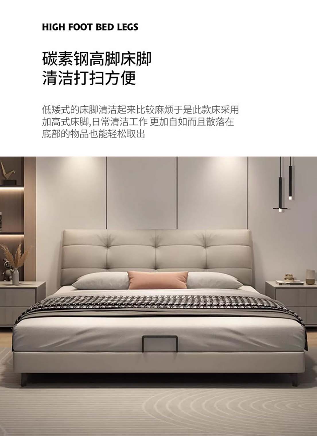 现代极简真皮床主泡芙风软包头层牛皮 双人床