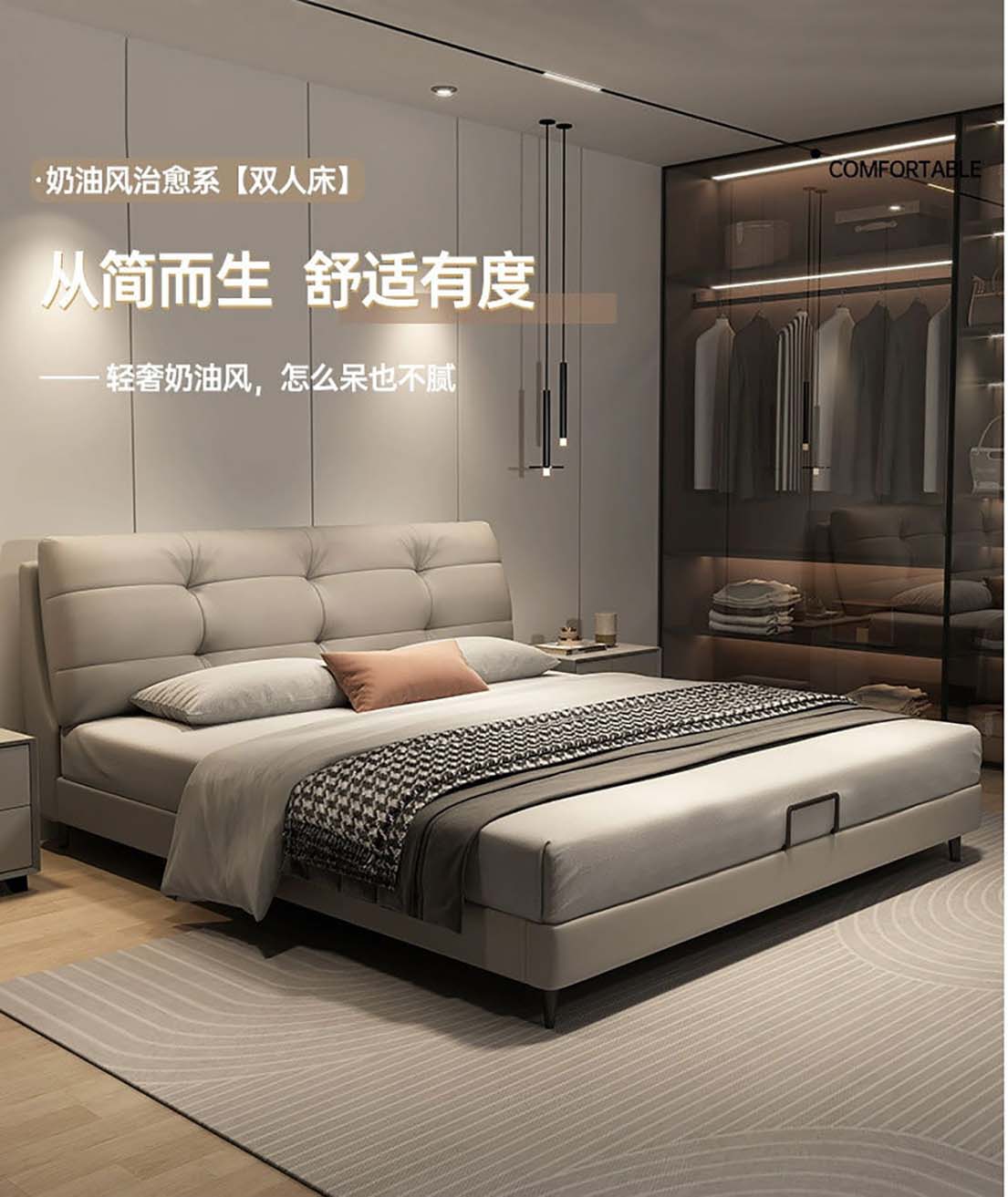 ¥9000.00意式布艺双人床 高级感轻奢主卧宽屏床设计师家具