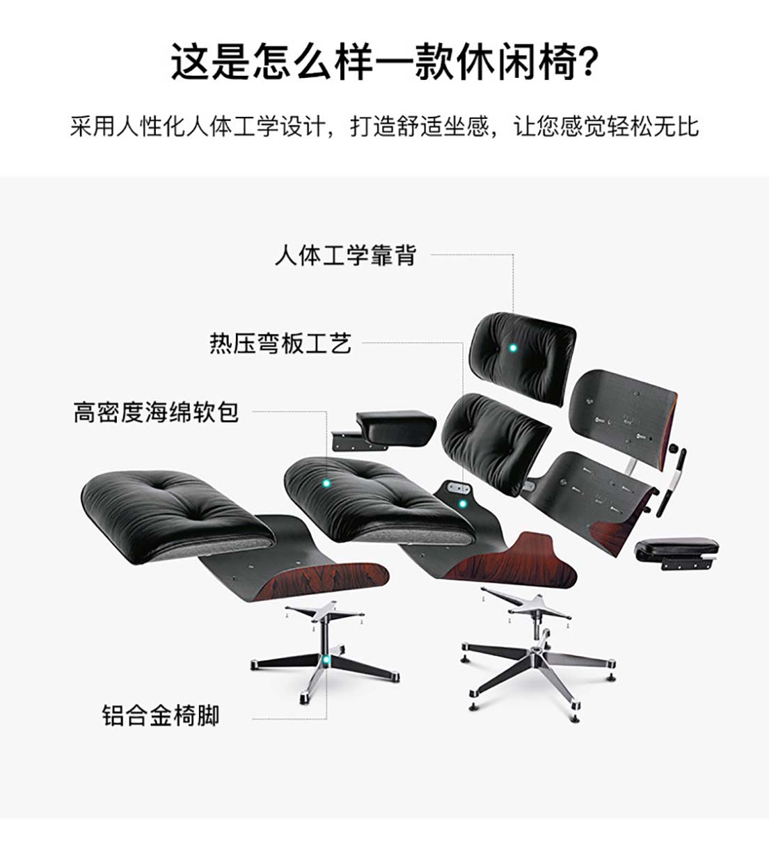 ¥3816.00意式单人躺椅 客厅书房创意设计师真皮阳台懒人椅沙发椅