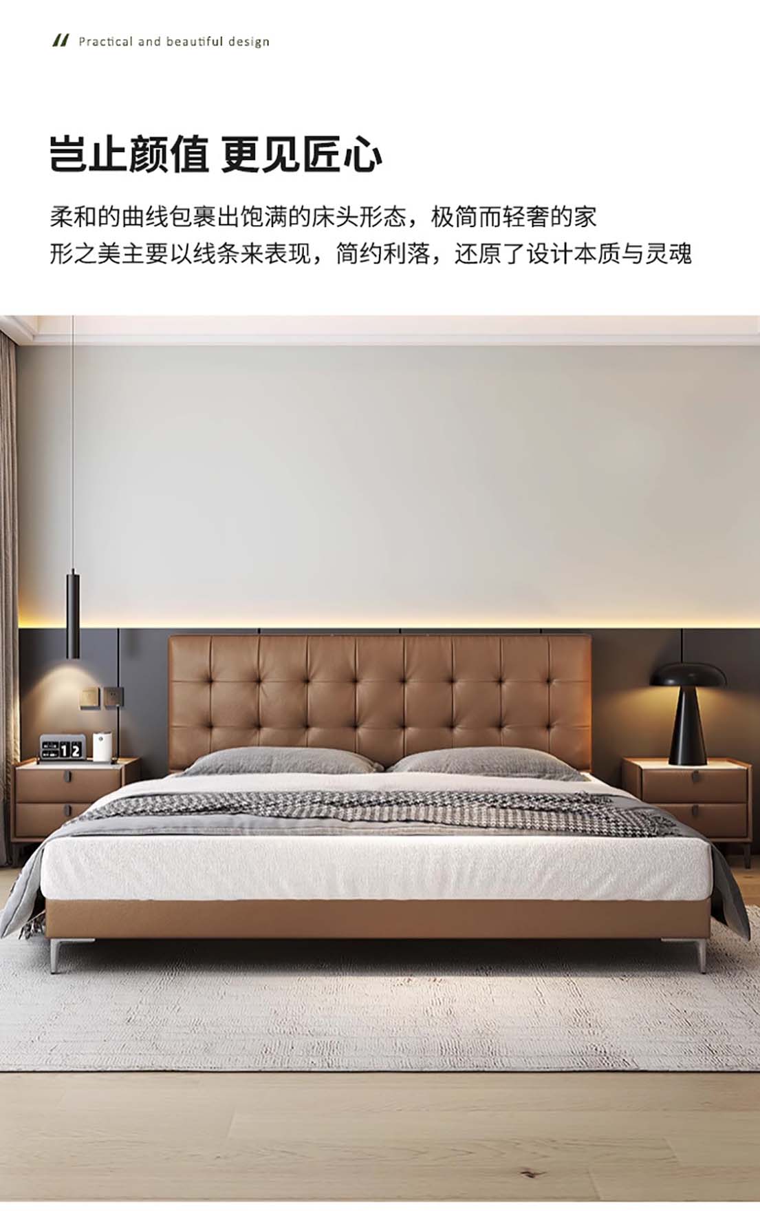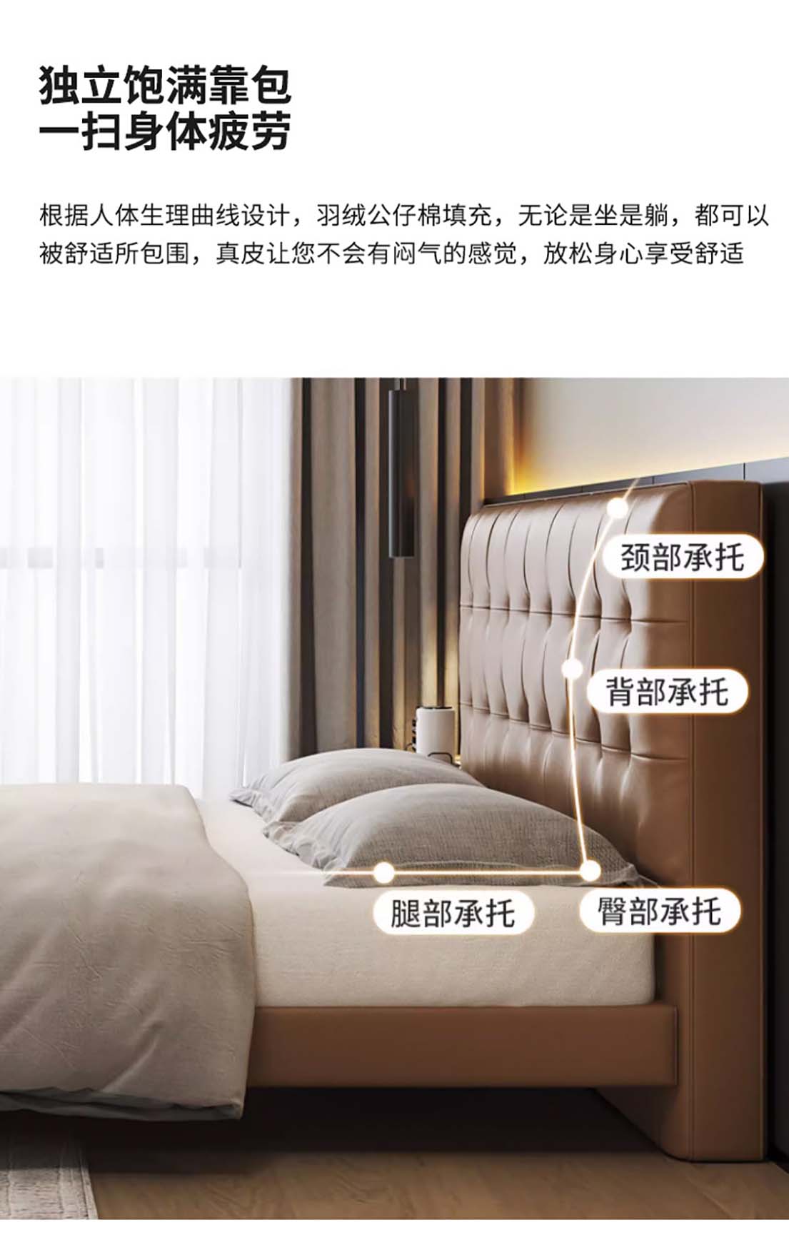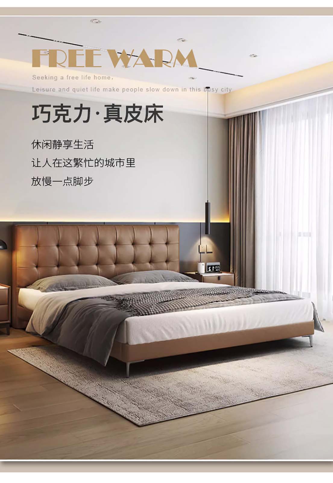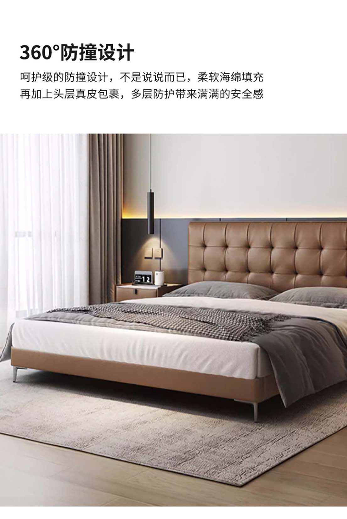 意式真皮床奢现代简约婚床1.8米高端卧室双人软包床