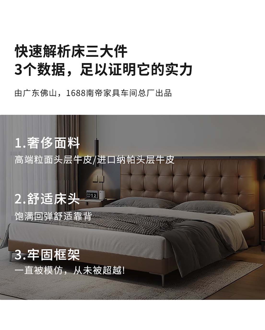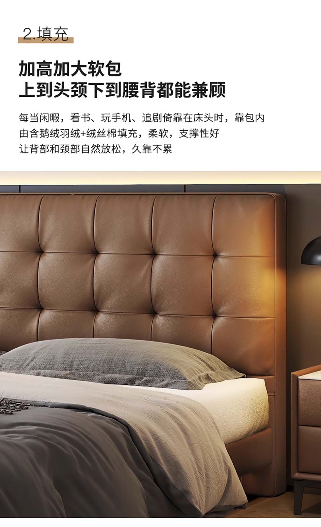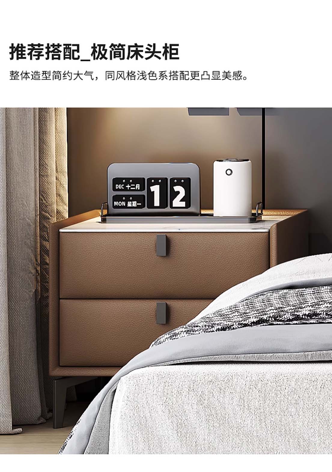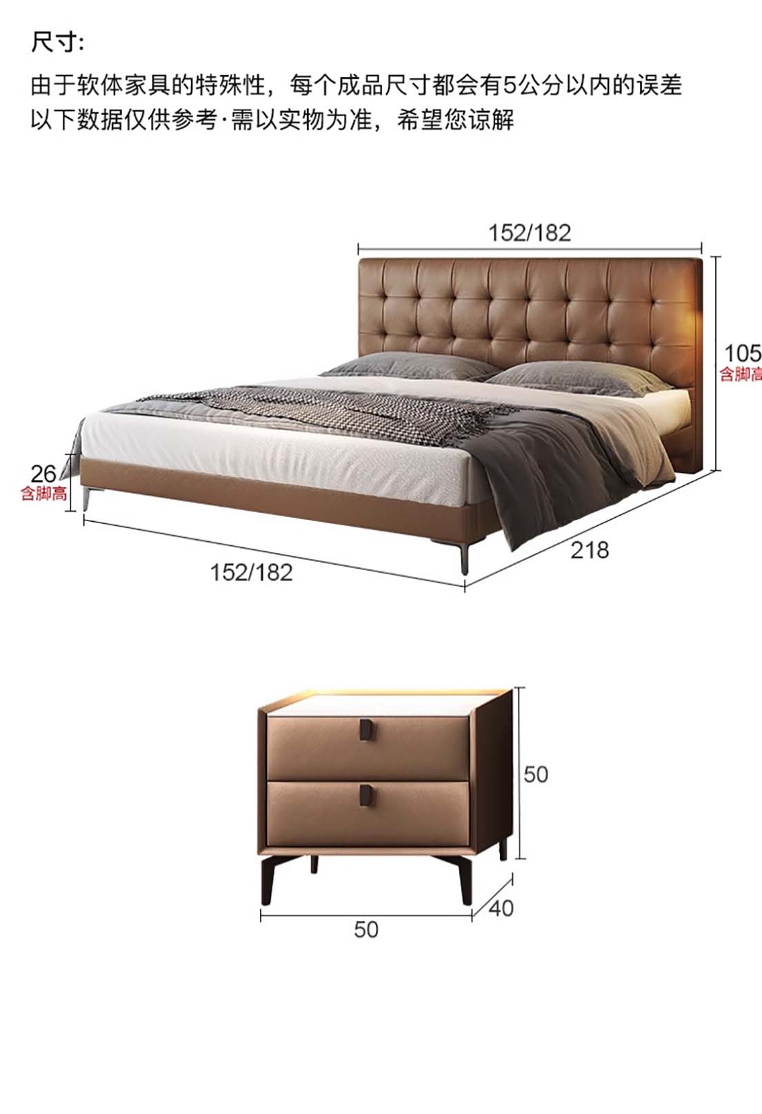 意式真皮床奢现代简约婚床1.8米高端卧室双人软包床