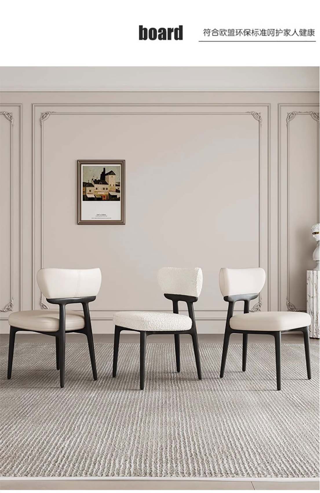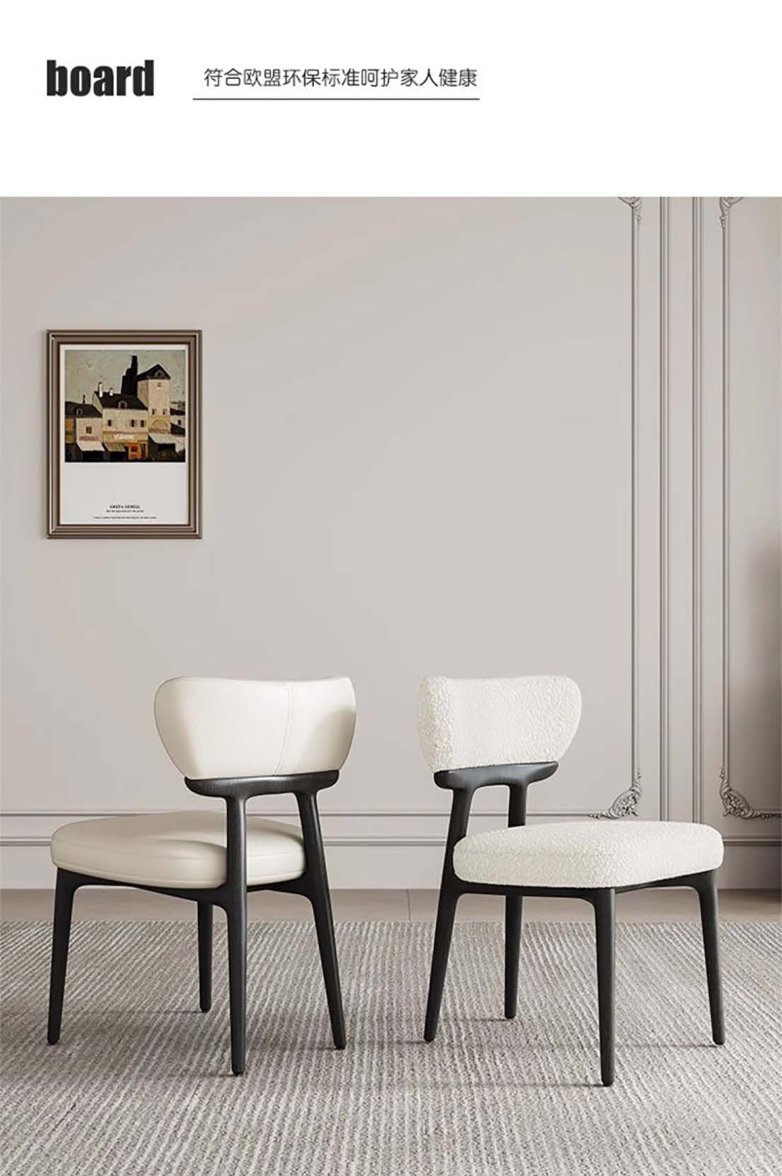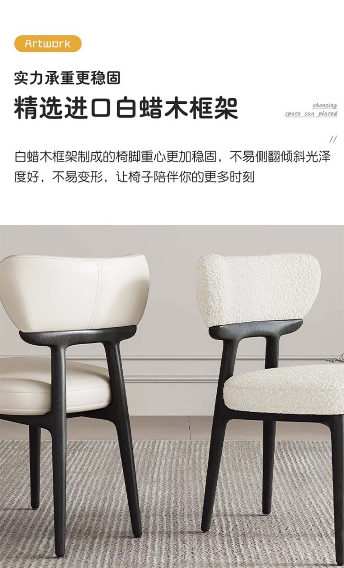 意式实木布艺餐椅 家用设计师真皮白蜡木椅子简约靠背椅