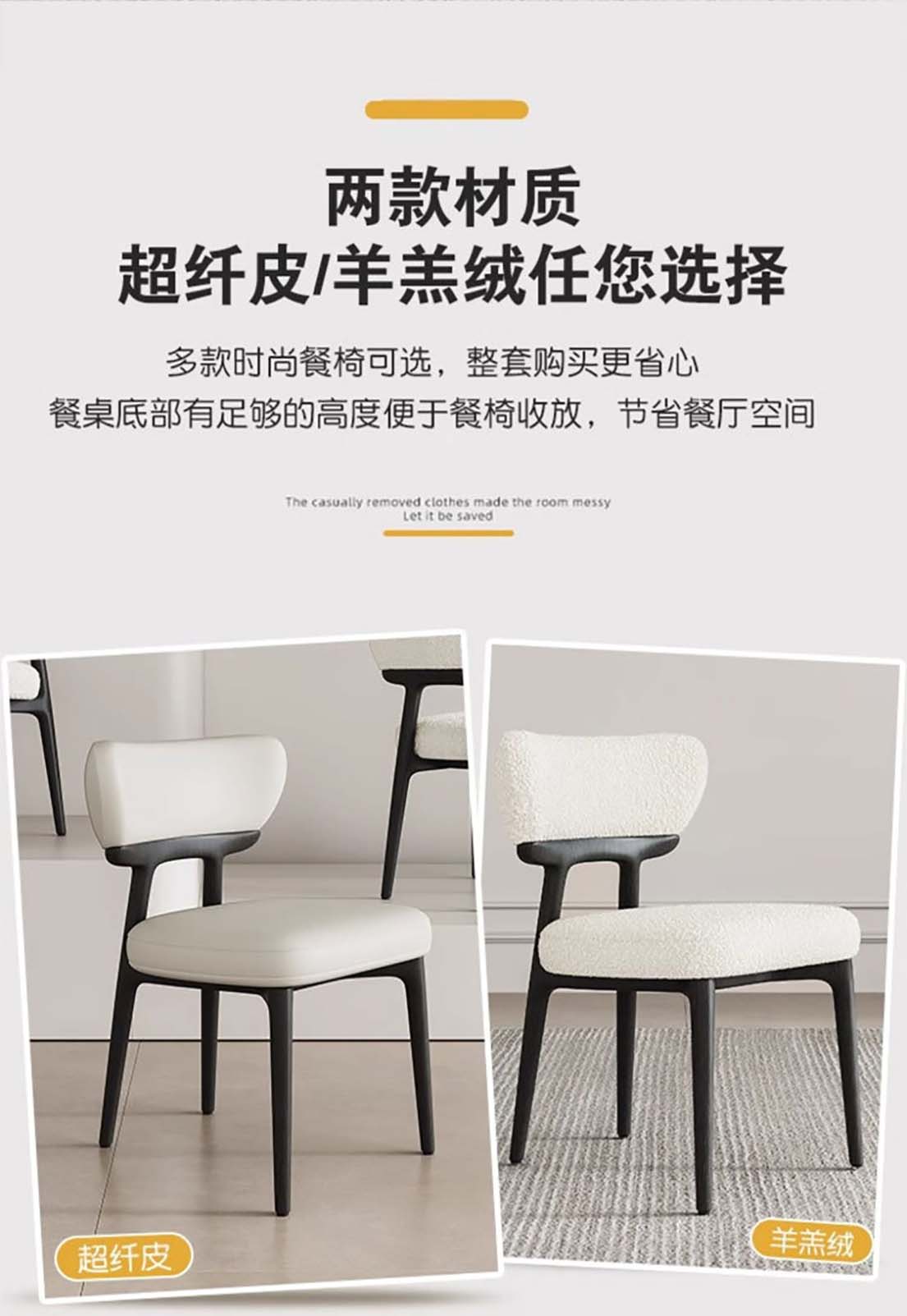 ¥816.00意式实木布艺餐椅 家用设计师真皮白蜡木椅子简约靠背椅