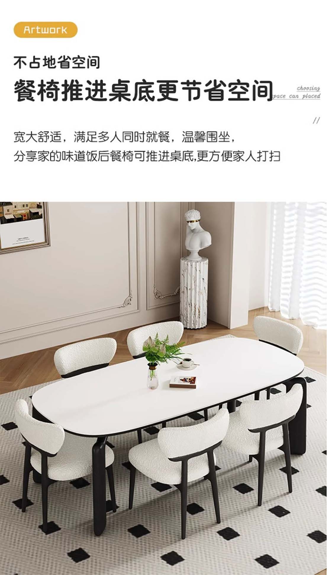 ¥3336.00意式轻奢微晶石餐桌 现代高端奢石家用别墅天然石餐桌