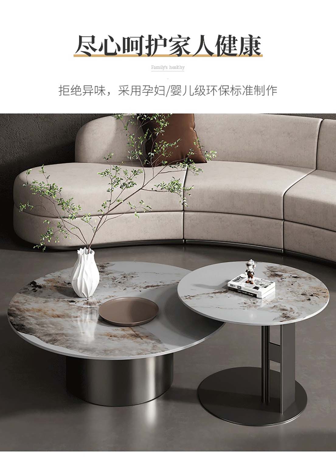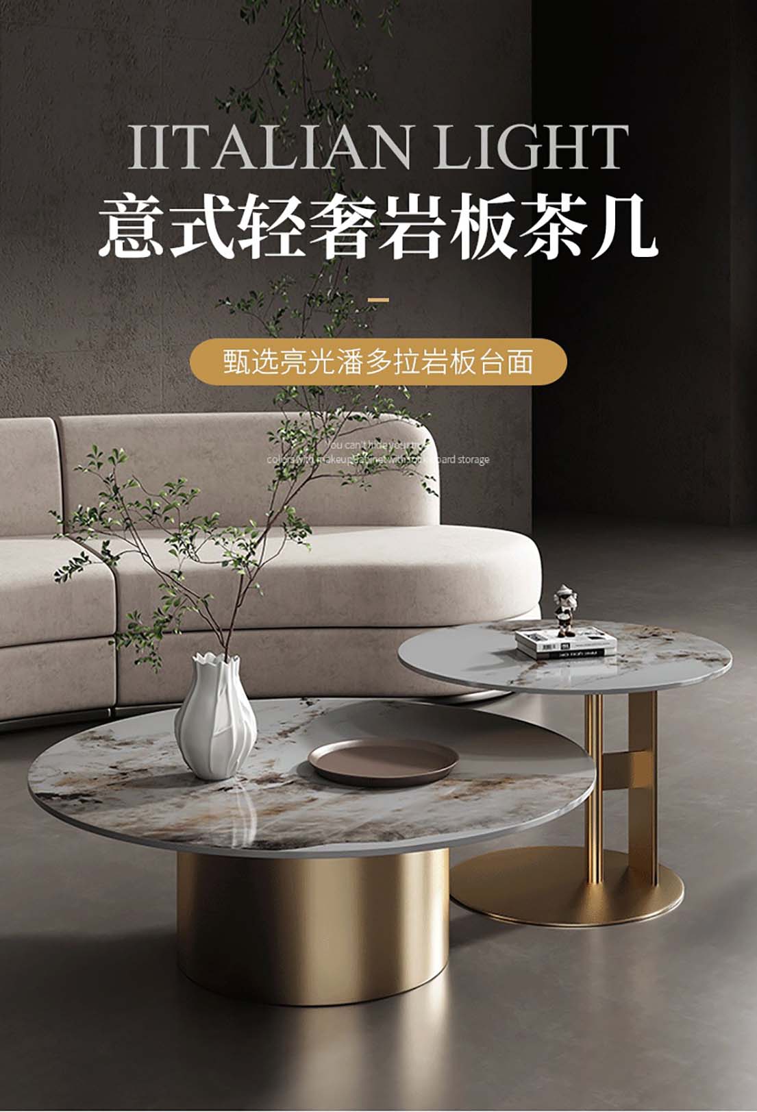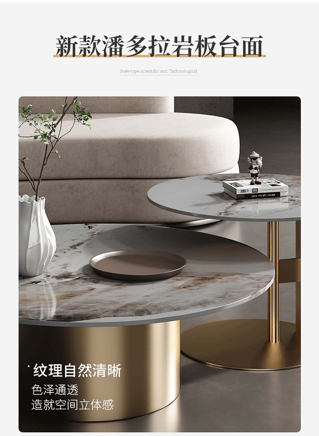 意式轻奢圆形岩板茶几组合 客厅家用设计师潘多拉岩板茶几