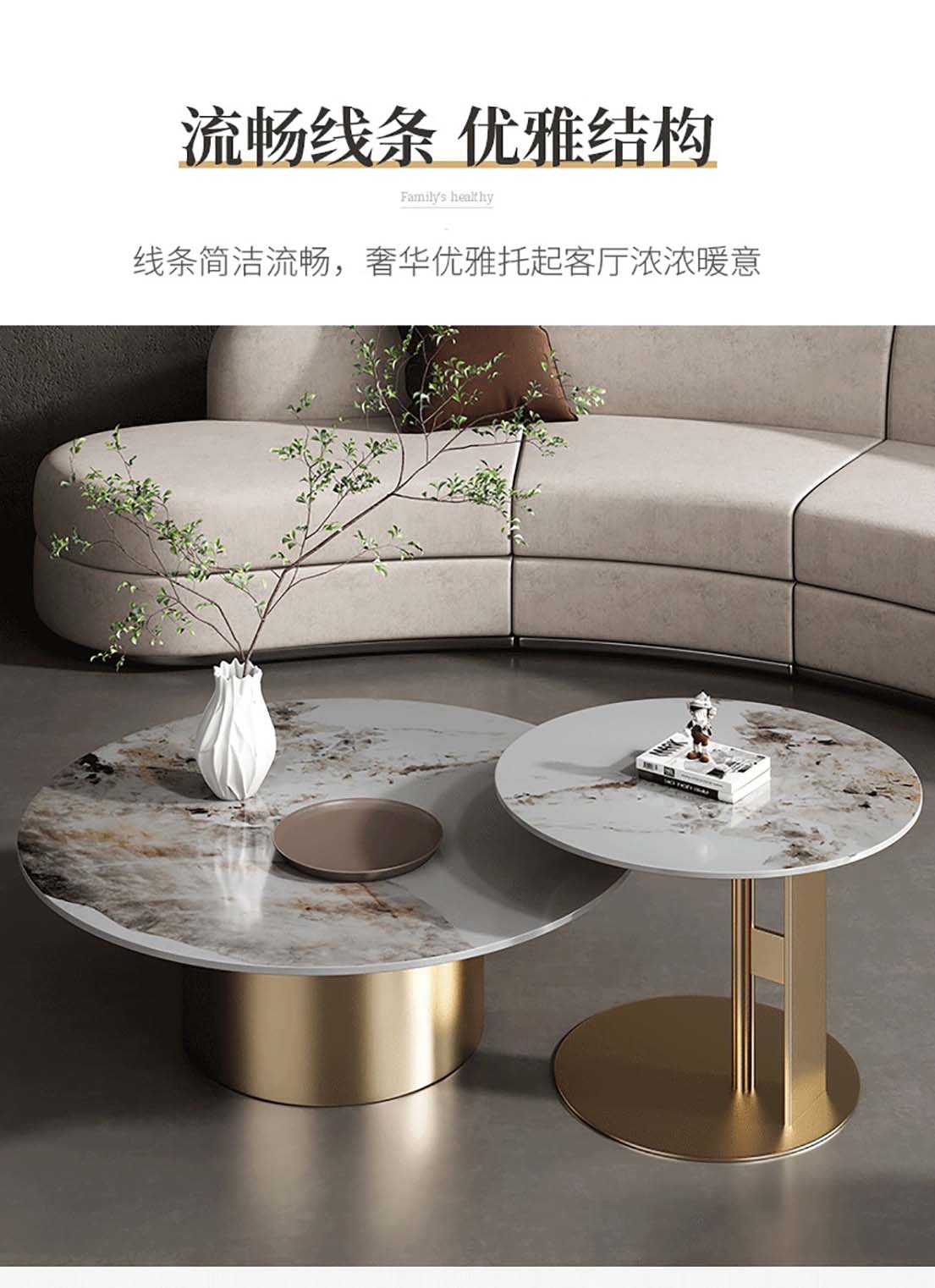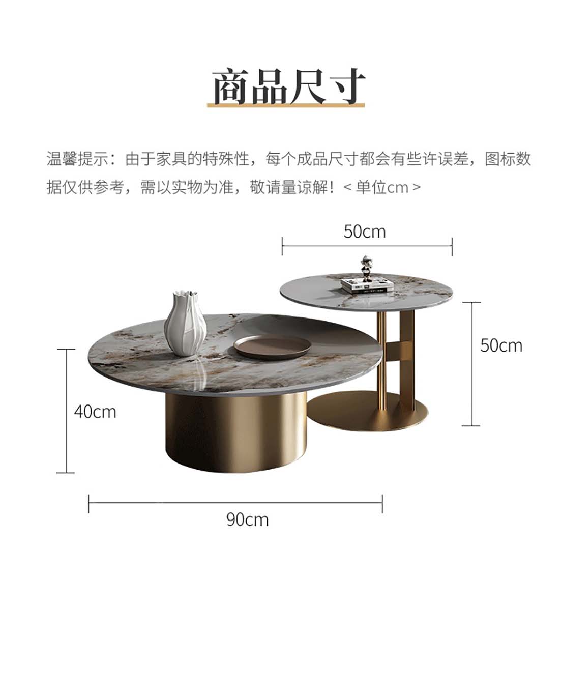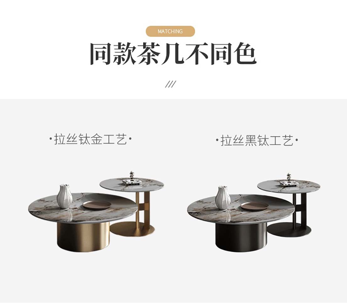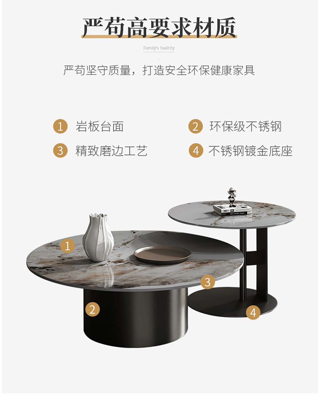意式轻奢圆形岩板茶几组合 客厅家用设计师潘多拉岩板茶几