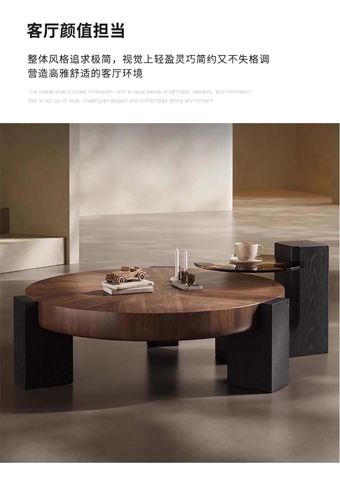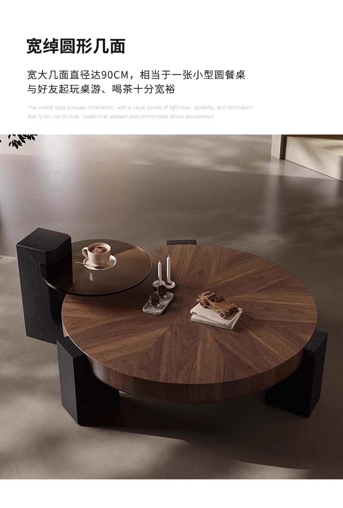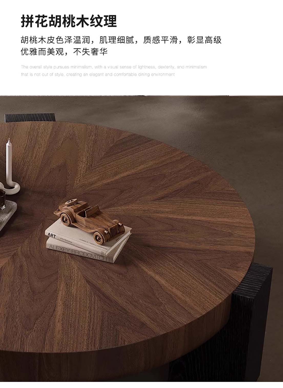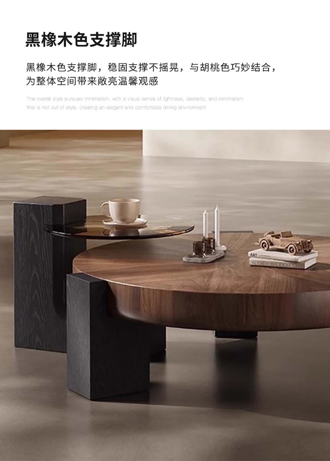 意式极简胡桃色木纹圆形茶几现代客厅设计师款茶几组合