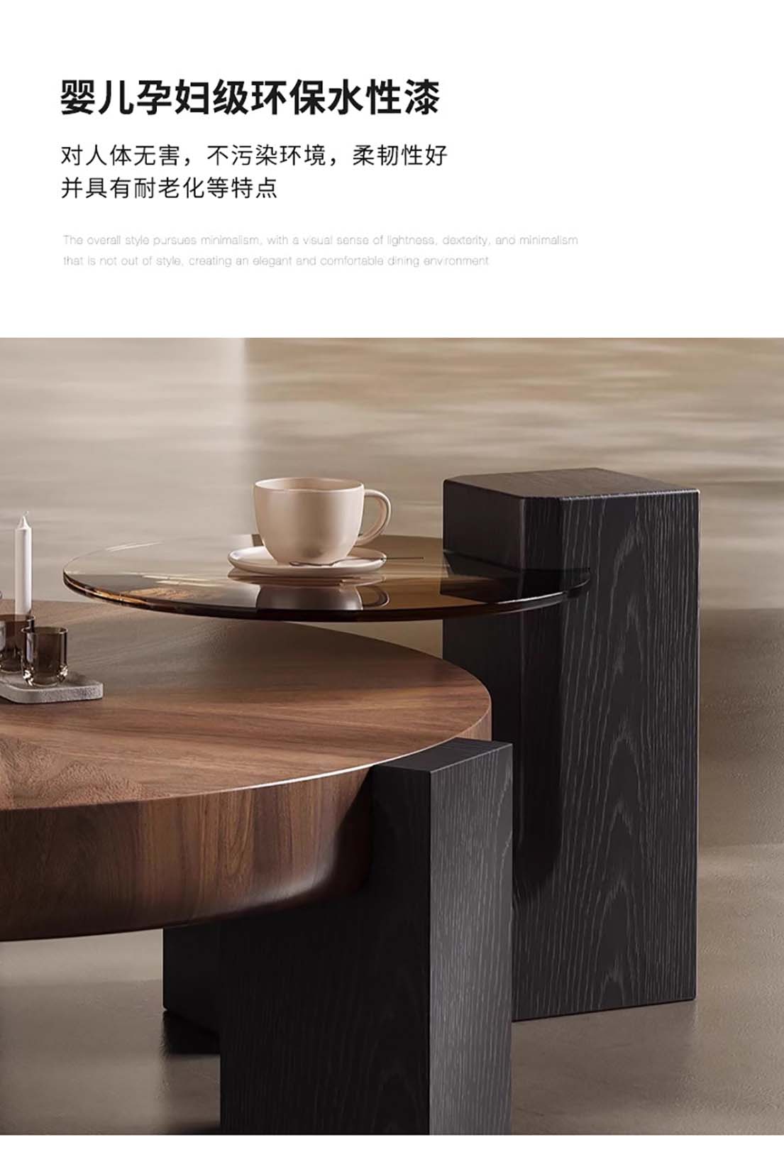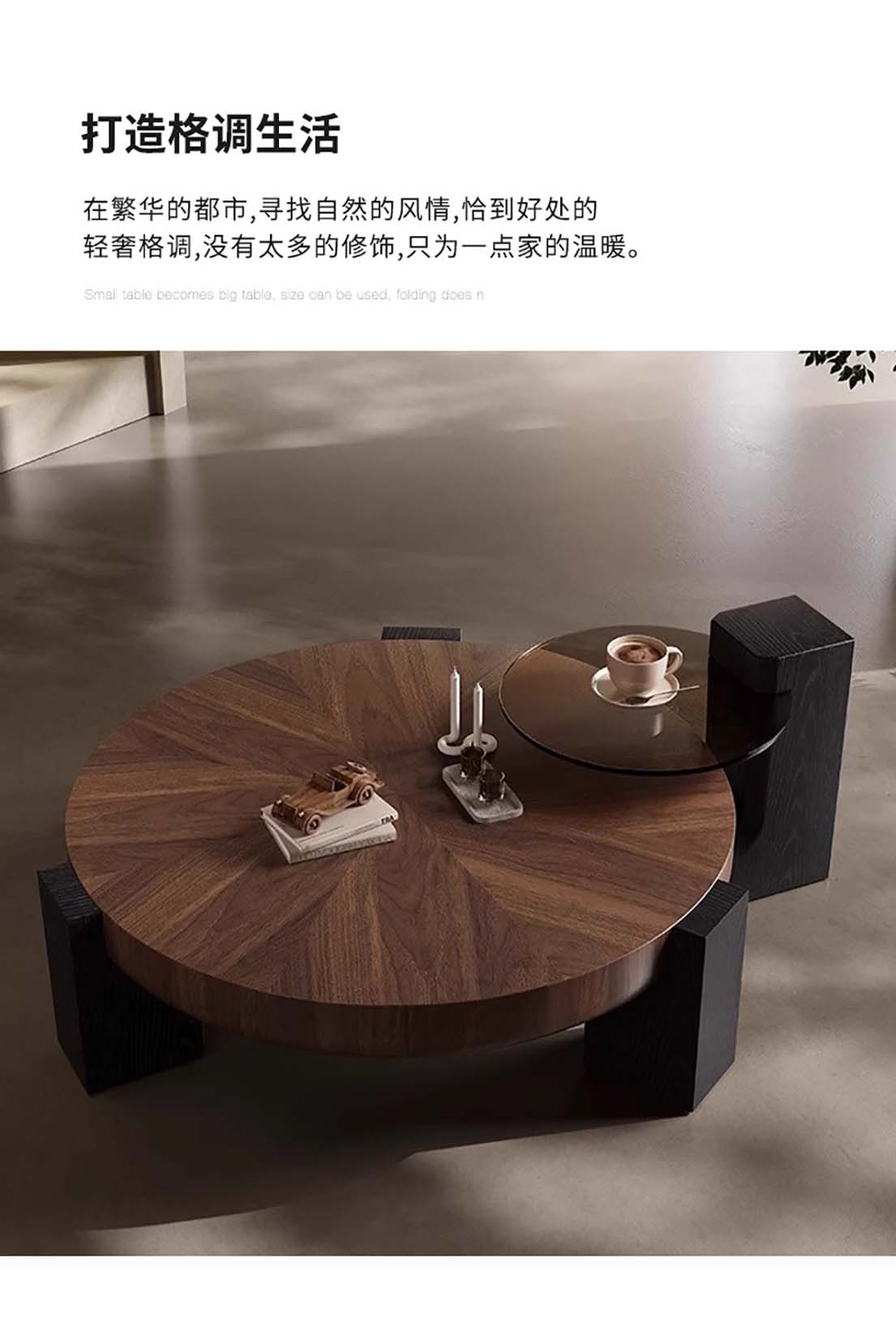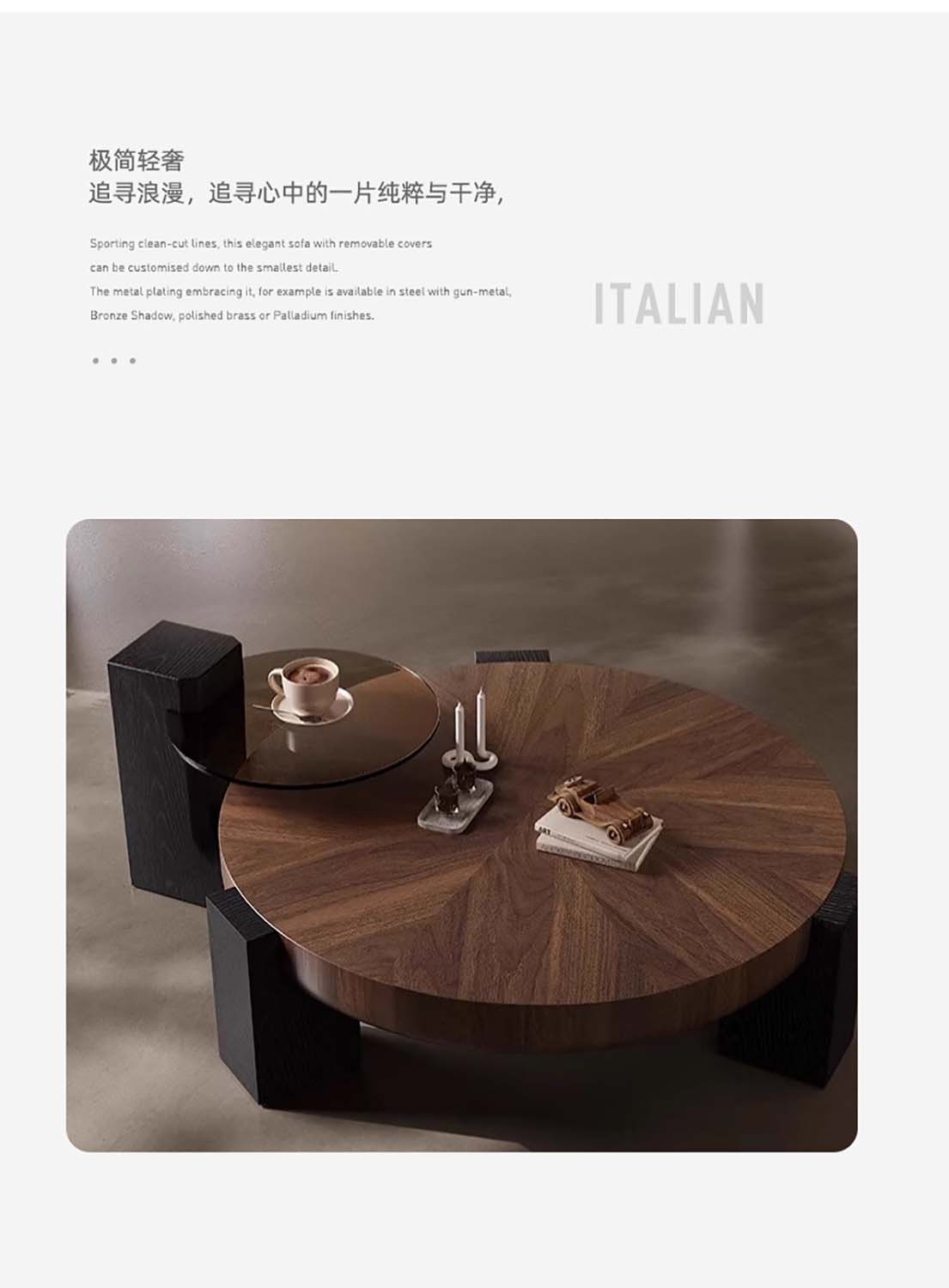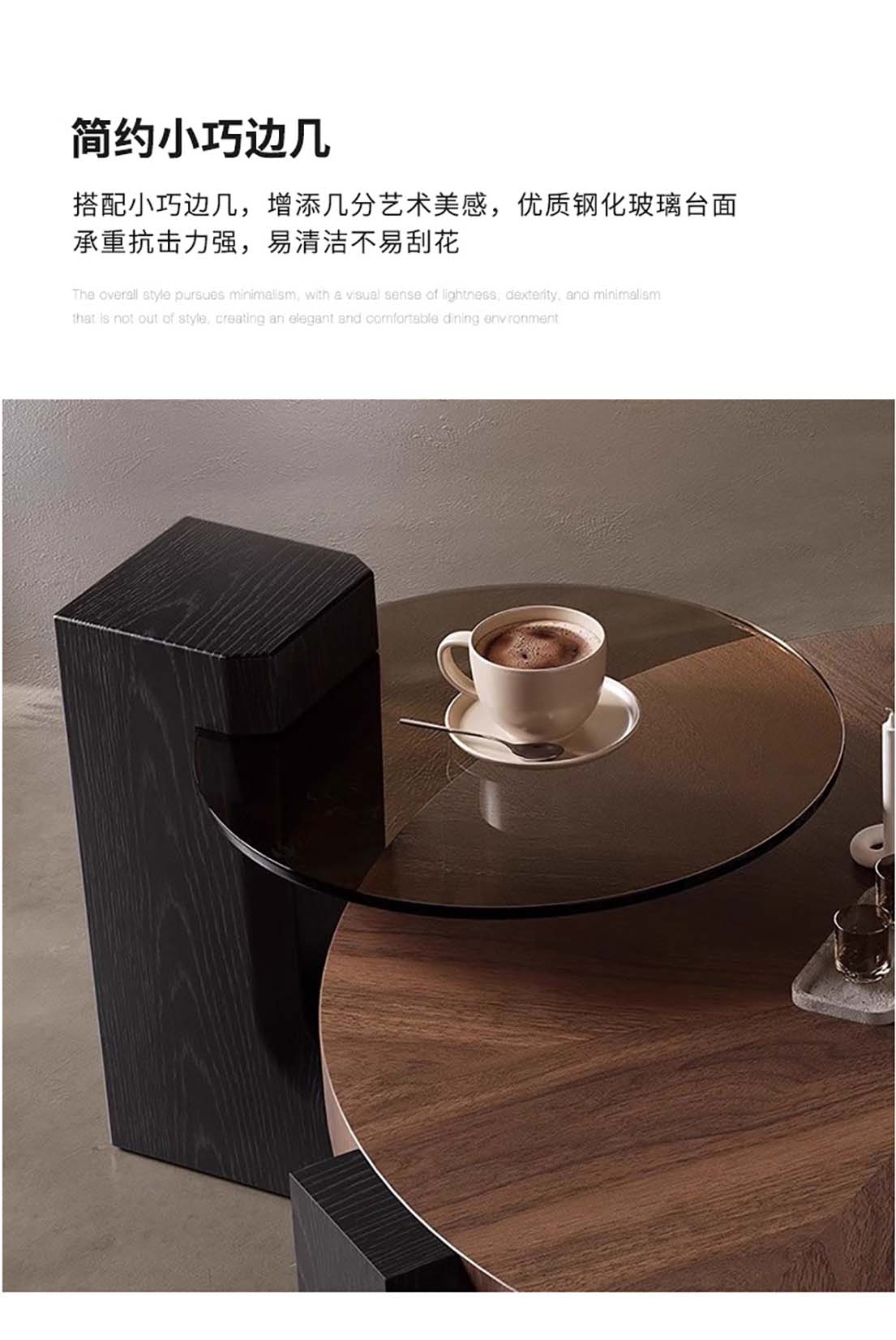 意式极简胡桃色木纹圆形茶几现代客厅设计师款茶几组合
