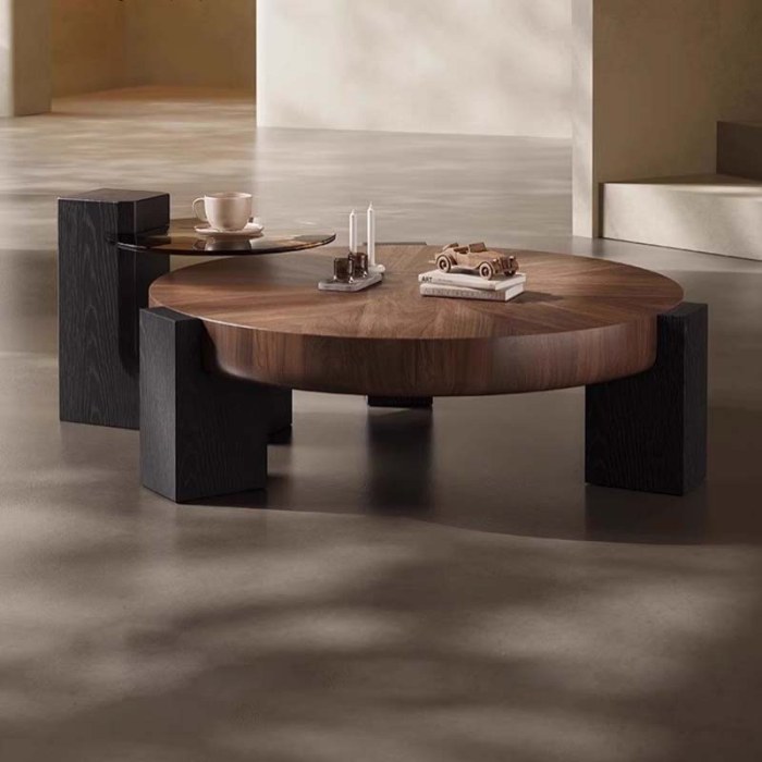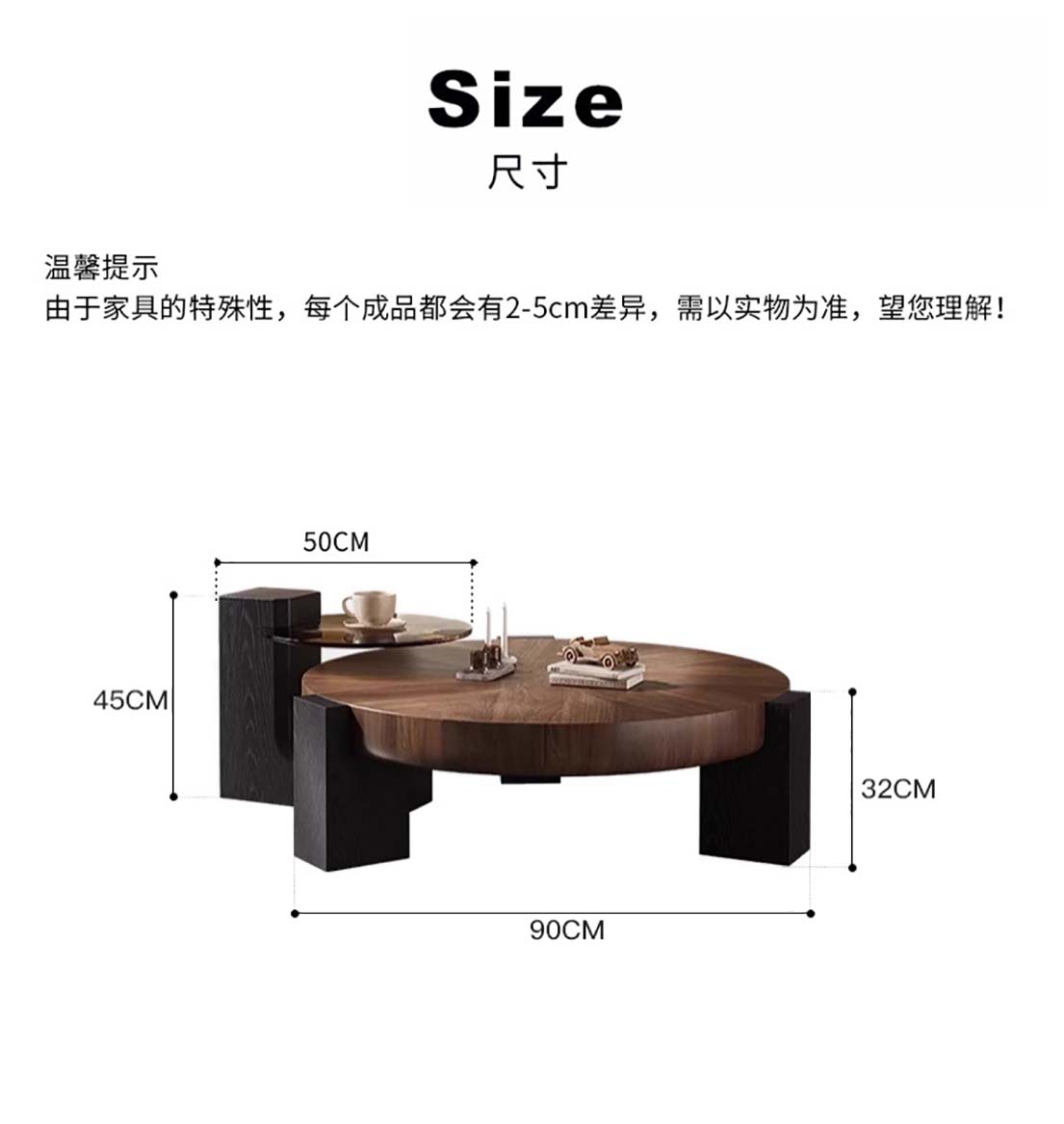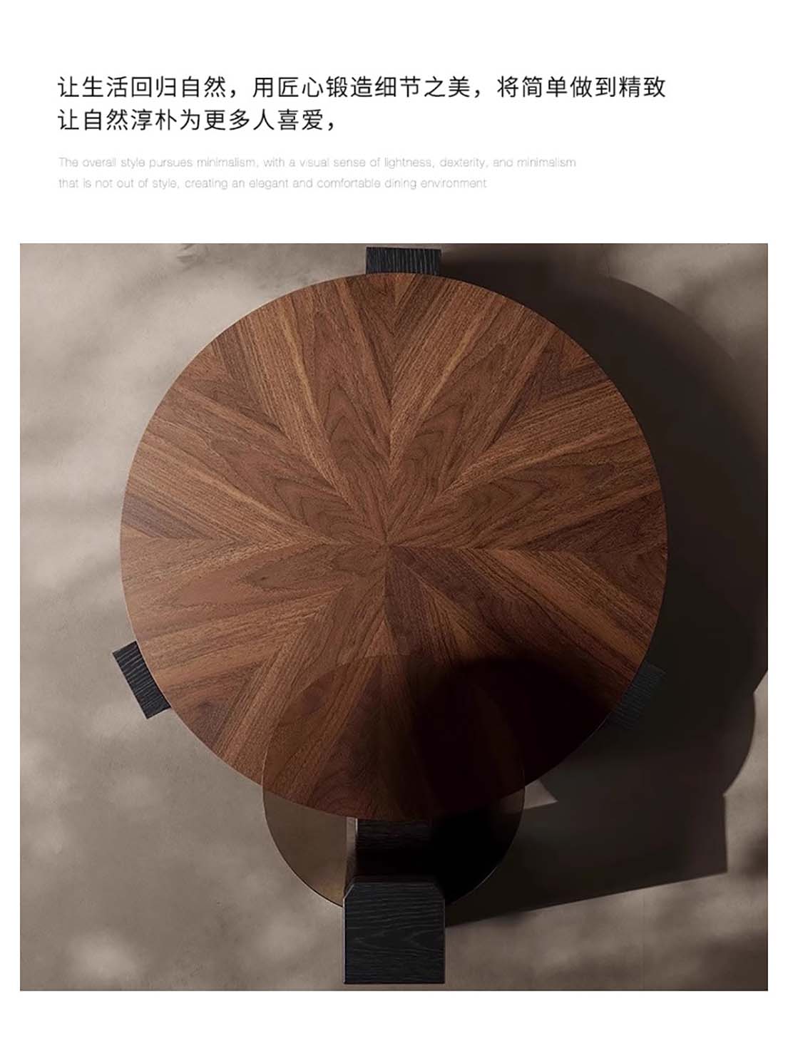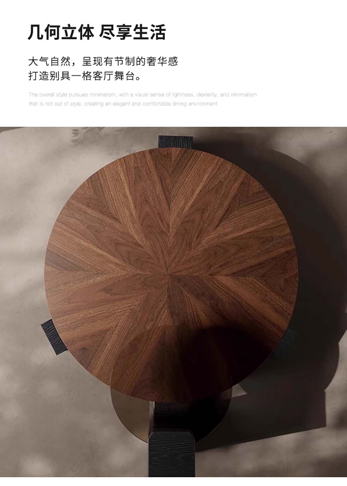 意式极简胡桃色木纹圆形茶几现代客厅设计师款茶几组合