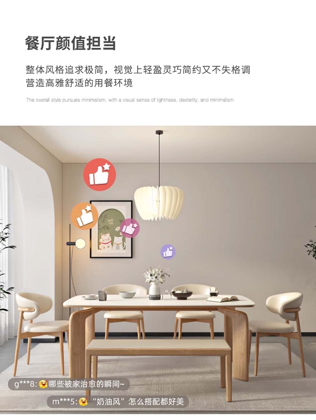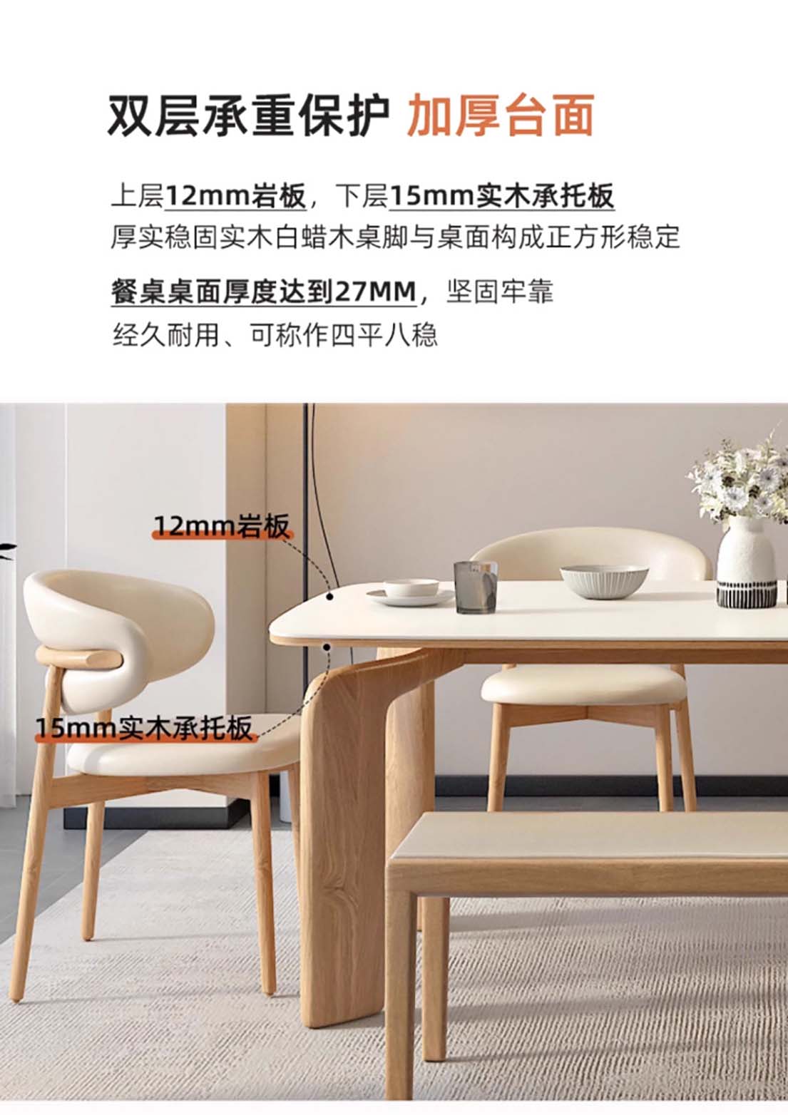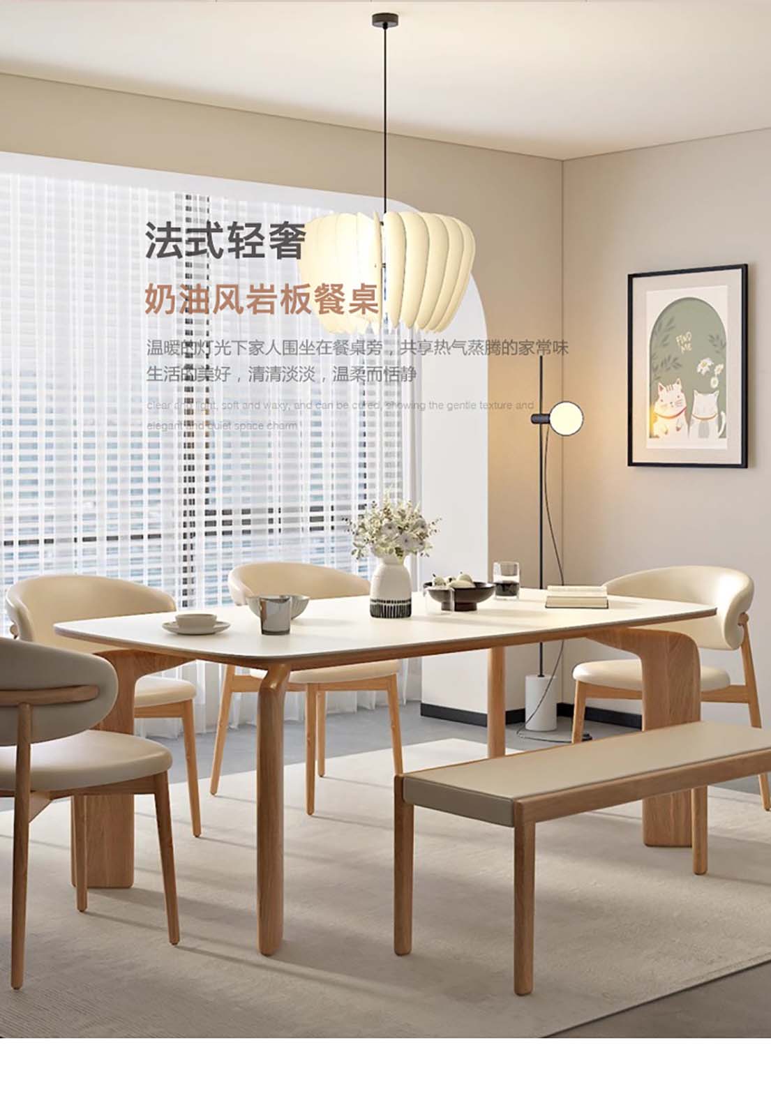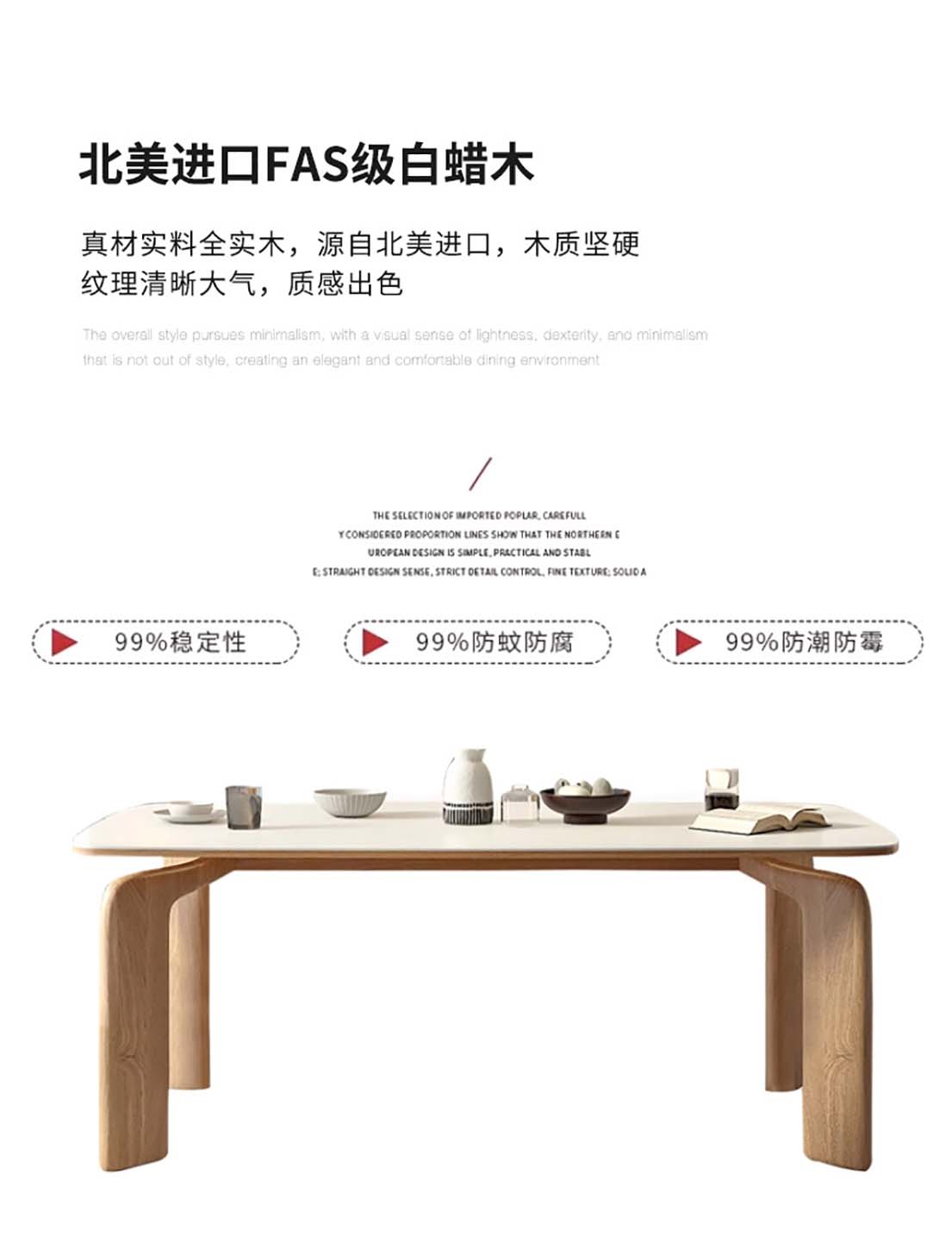¥2976.00简约原木风白蜡木岩板餐桌 家用小户型长方形大象腿餐桌椅组合