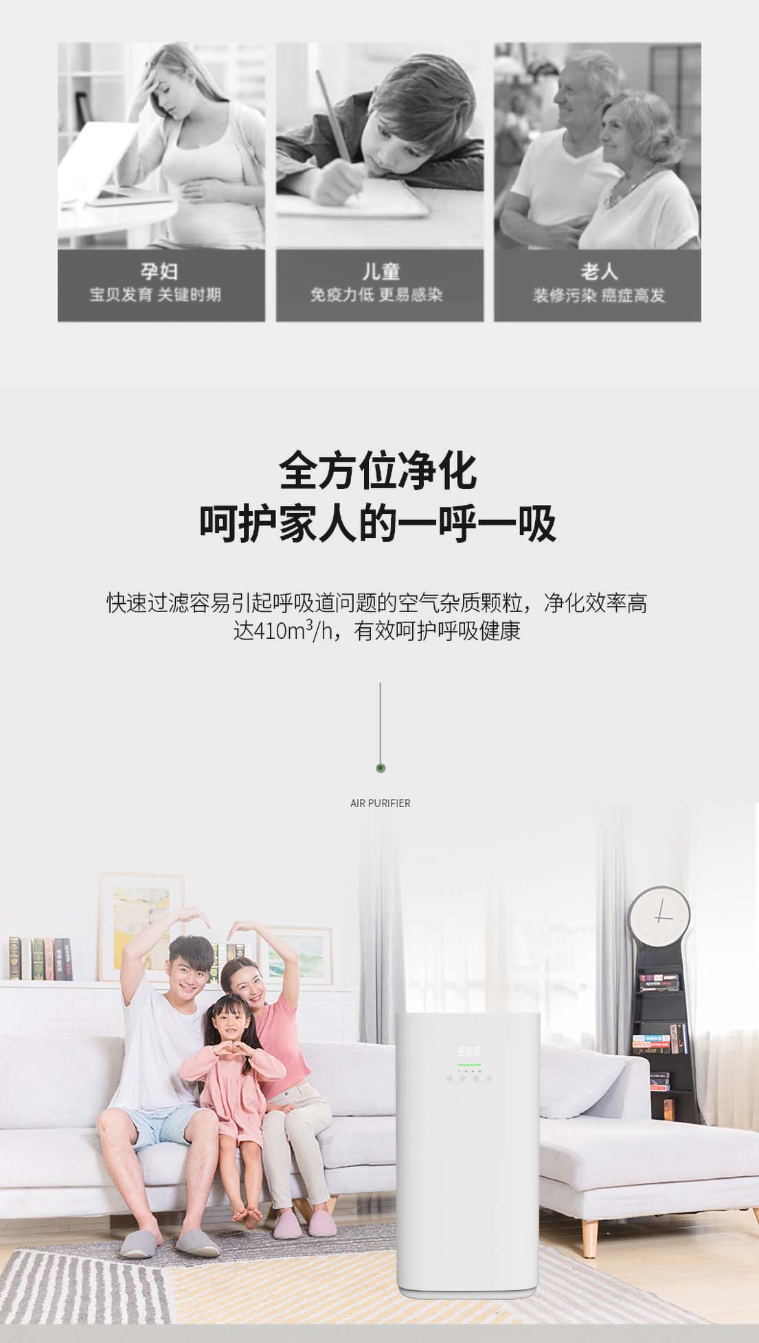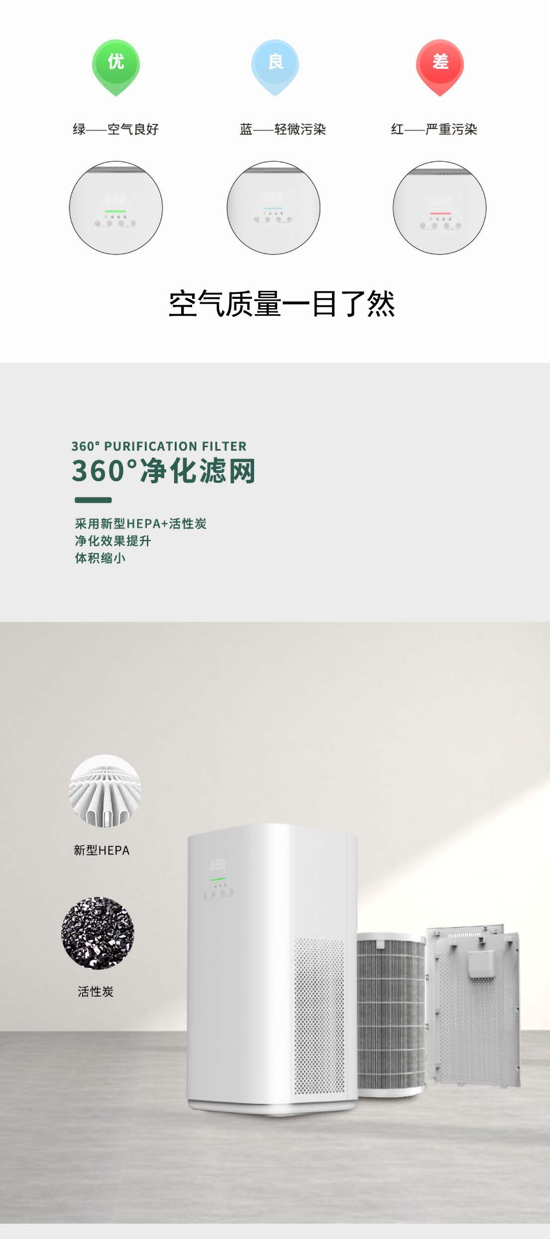 家用时尚白色空气净化器 HEPA复合滤网医保级高效净化器