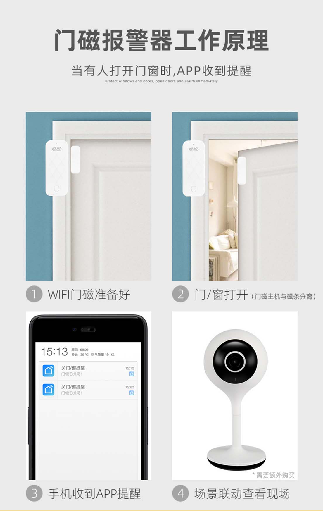 涂鸦WIFI智能门磁探测器 家用门窗防盗入侵感应无线门磁报警器