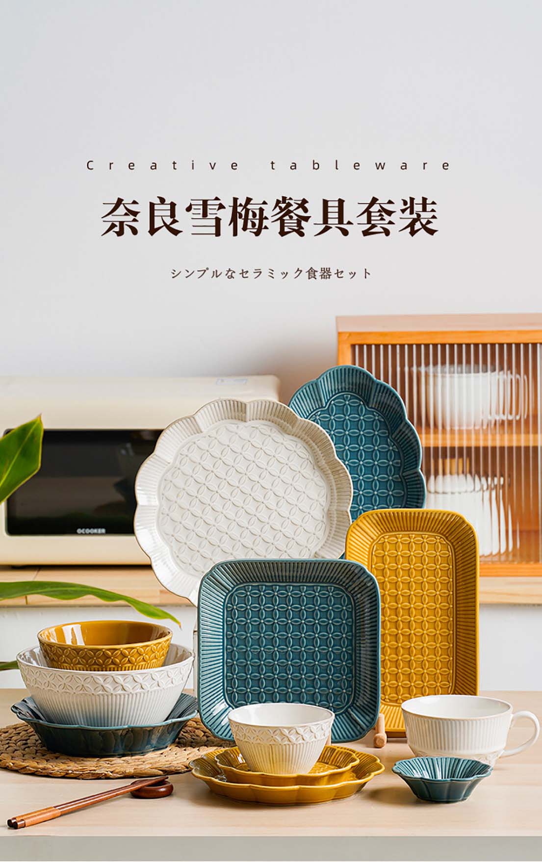¥10.56奶油风浮雕陶瓷碗碟套装 家用简约新款餐具碗盘子碗餐具