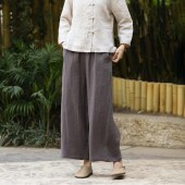 春夏新款新中式直筒休闲裤 亚麻阔腿女装高腰裤